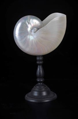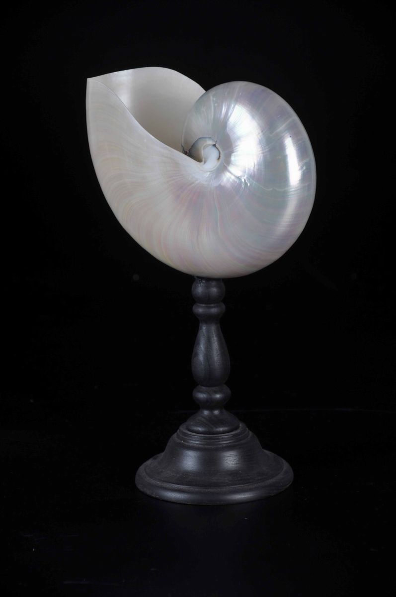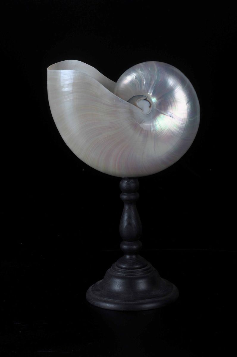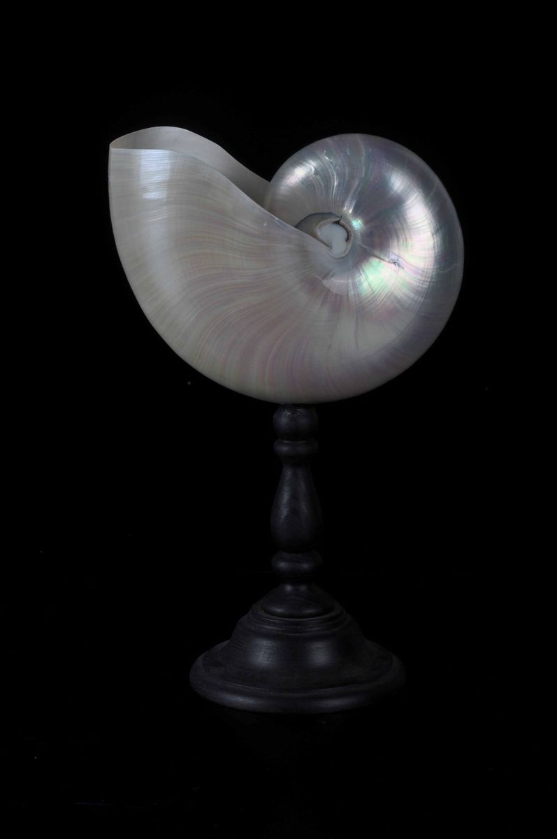 Nautilus lucidato su base in legno