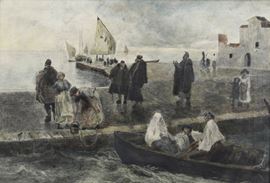 Anonimo del XX secolo Veduta di porto