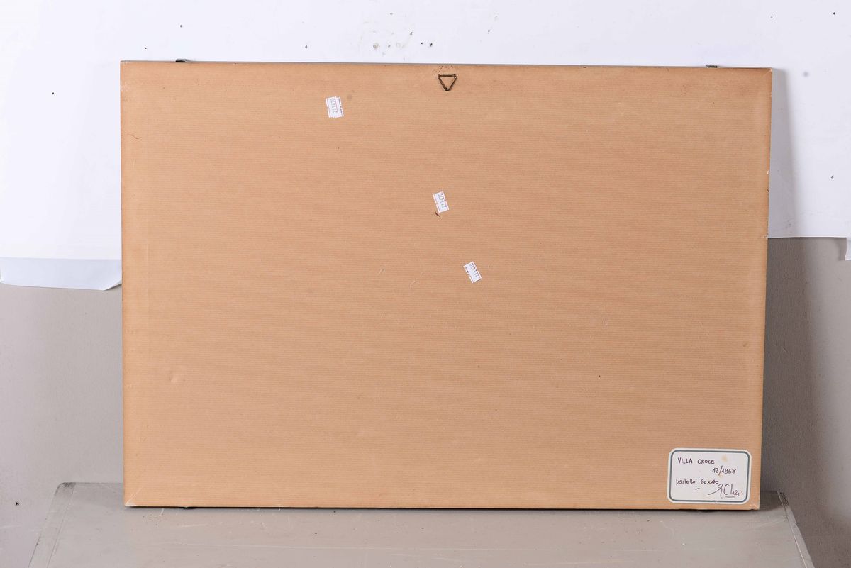 Pastello su carta raffigurante paesaggio in cornice
