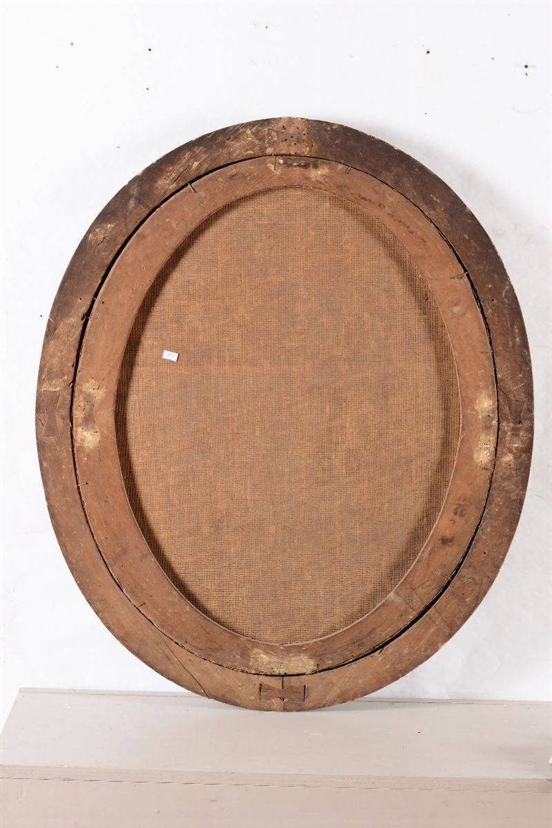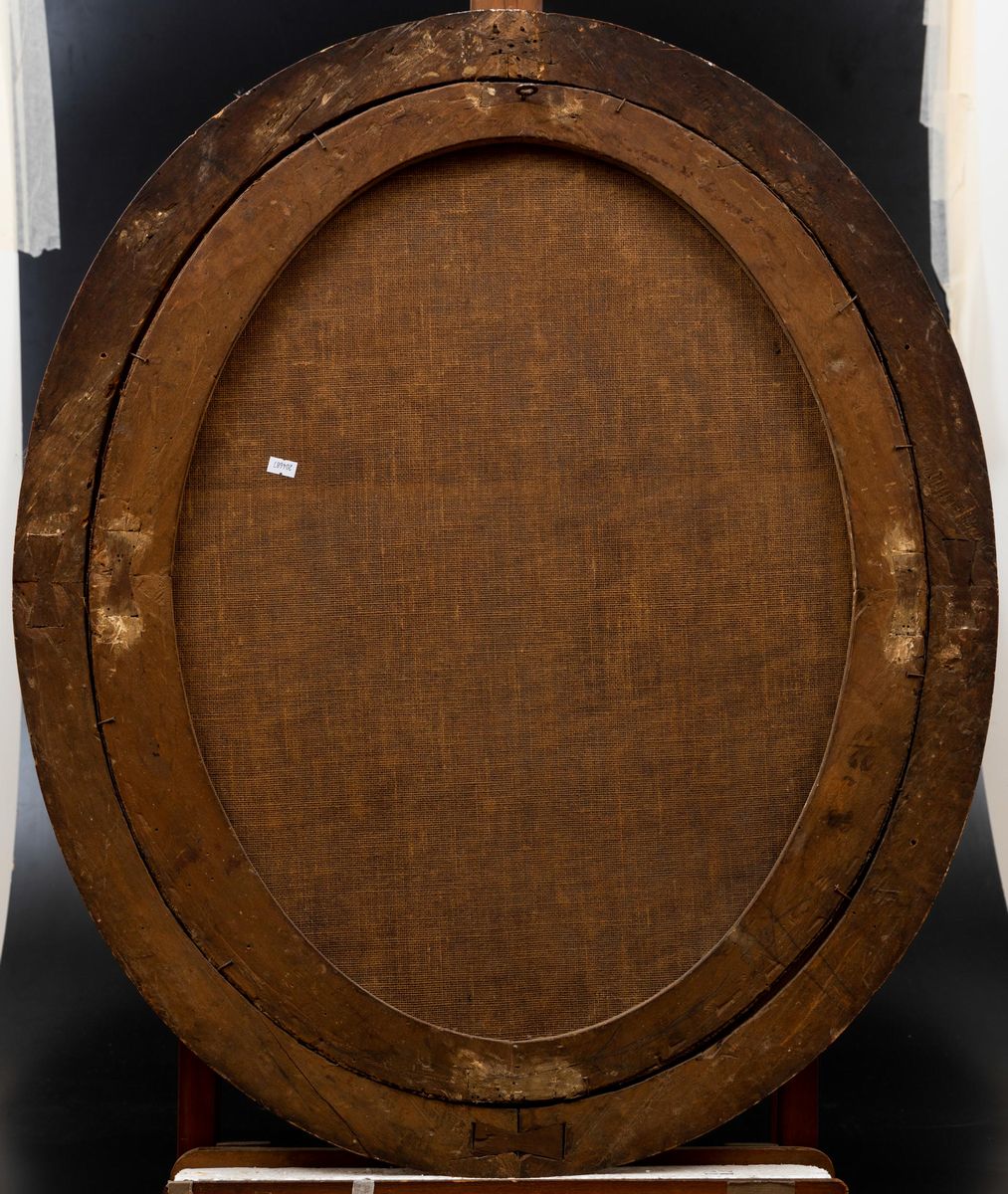 coppia di dipinti ad olio su tela ovale, cm 80x60