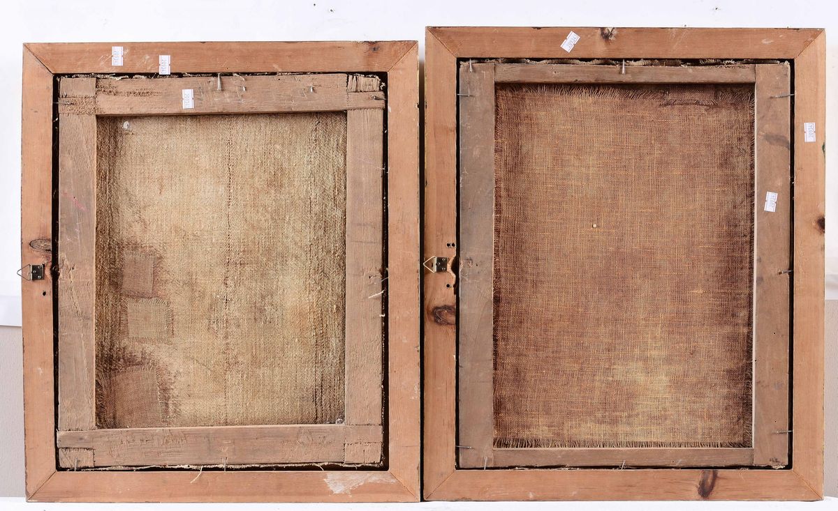coppia di dipinti ad olio su tela, cm 35x42