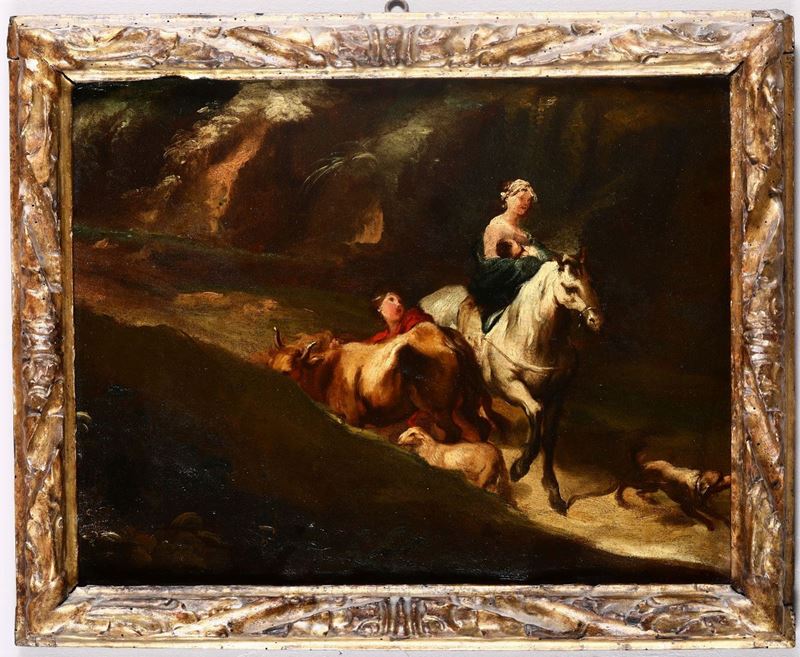 Scuola veneta del XVIII secolo Paesaggio con viandanti