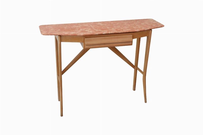 Consolle con struttura in legno, cassetto, piano in marmo rosso Verona.