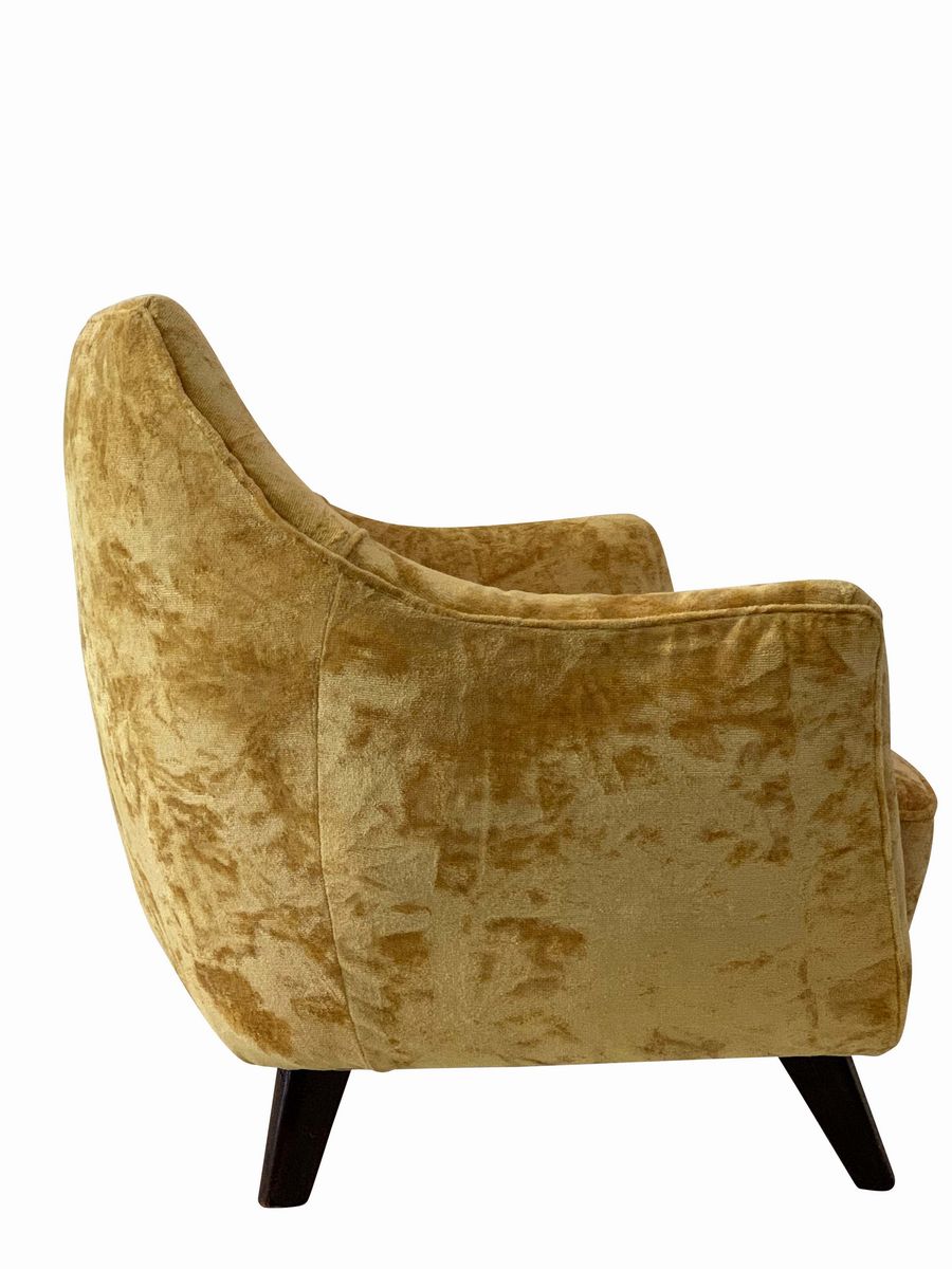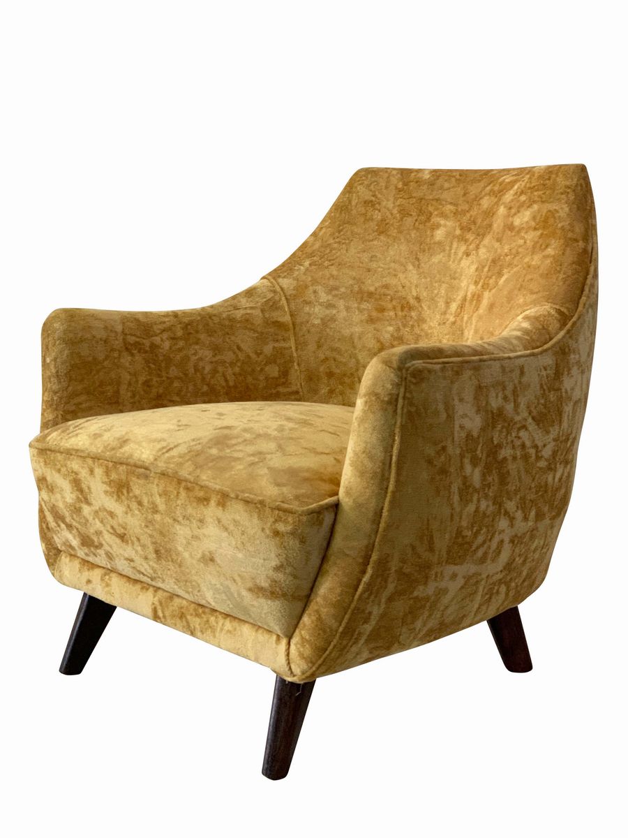 Poltrona con struttura e sostegni in legno, rivestimento in velluto.