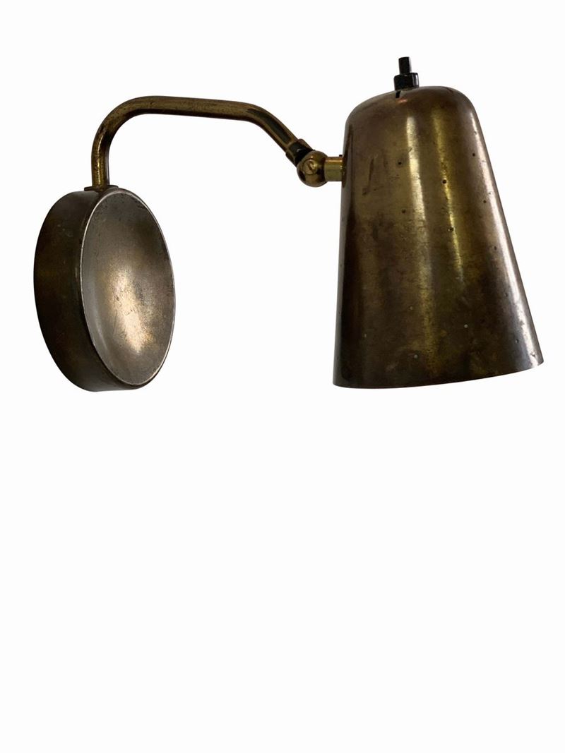 Lampada da tavolo orientabile con struttura e diffusore in ottone.