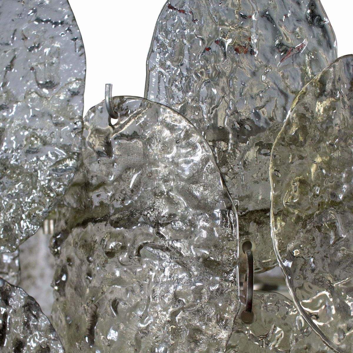 Lampada a plafone mod. Torcello con struttura in metallo nichelato ed elementi diffusori in vetro di Murano bugnato rinfrangente lavorato a mano.