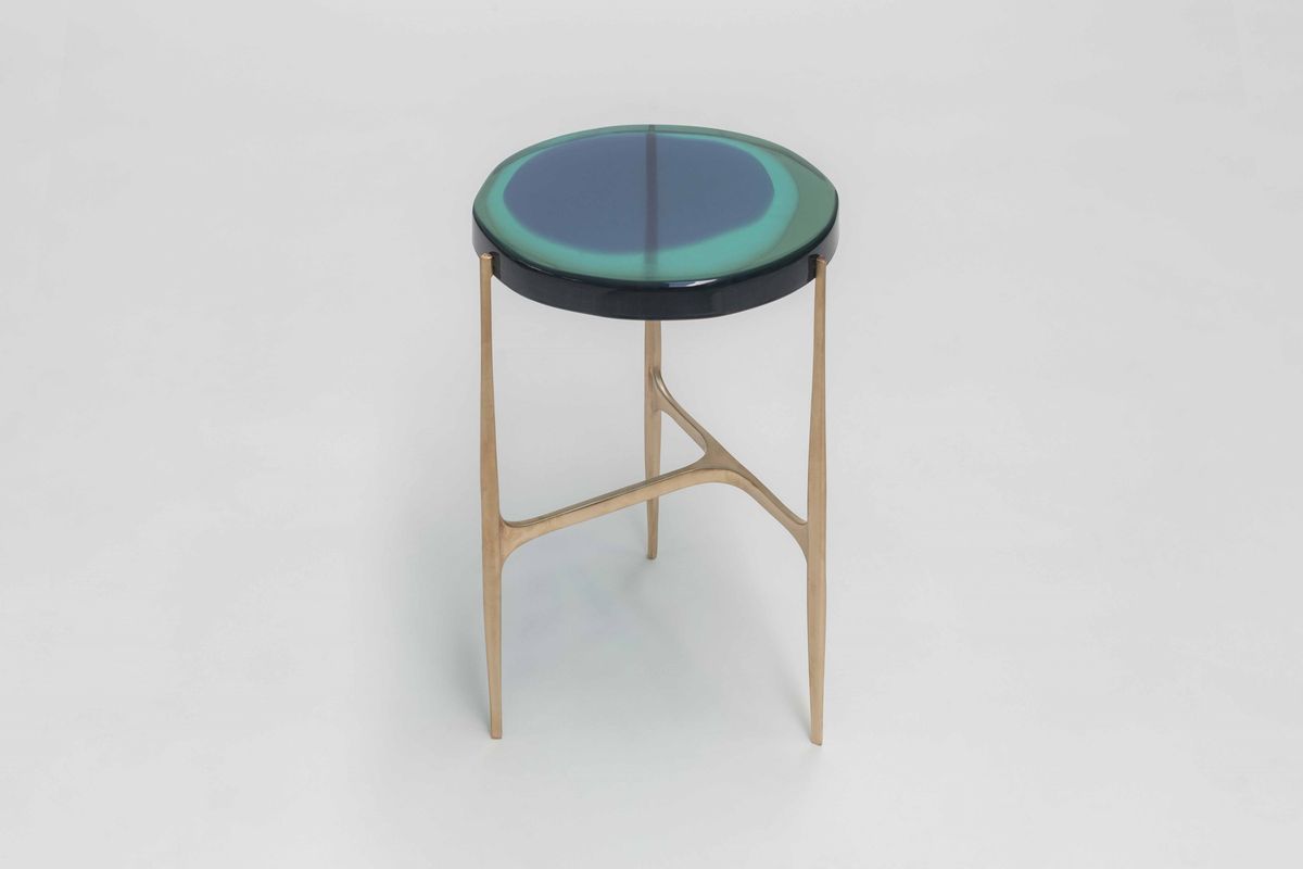 Il tavolino Agatha presenta piani circolari irregolari in resina trasparente e colorata, posizionati su una struttura in bronzo. Il processo di creazione del piano richiede una tecnica speciale di fusione della resina nello stampo in tre strati di resina colorata. Realizzato a mano nel nostro Atelier di Como, ogni pezzo è unico. Il tavolino da caffè fa parte della collezione Transparency Matters che riflette l'uso di materiali trasparenti e una più profonda esplorazione di ciò che la trasparenza può significare nell'arte e nel design. Founded in 2007 in the town of Como, Italy, Draga & Aurel is a multi-disciplinary design studio that works along the spectrum of furniture, textile and interior design. Draga Obradovic began her career in the fashion industry, first working in London and Milan as a textile designer before eventually settling in Como. Aurel K. Basedow graduated from Milan’s Accademia di Belle Arti with a degree in Fine Arts, having previously trained as a carpenter and woodworker. Thanks to their sympathetic methods, combined with an artist’s approach to material and composition Draga & Aurel are widely recognized for their clever reinvention of bespoke vintage design pieces. Their showing at 2009’s Salone del Mobile introduced the duo to the world stage; it followed the partnerships with Italian leather manufacturer Baxter, wallpaper brand Wall&Deco and major American fashion retailer Anthropologie that have pushed the pair’s domain beyond the reinvention of singular vintage pieces. While interior projects, like Sicily’s Dimora delle Balze and Cannavacciuolo’s Café & Bistrot in Novara, have expanded their sought after aesthetic into the realm of hospitality and lifestyle. In occasion of the 2019 Milan Design Week the design duo presented Transparency Matters, an exhibition of limited edition pieces, entirely fabricated by hand in their Como atelier. Later, Draga & Aurel have participated with a site-specific project to Nomad Circle, the showcase for contemporary art and collectible design, in the 2019 edition in Venice and in the 2020 in St. Moritz.