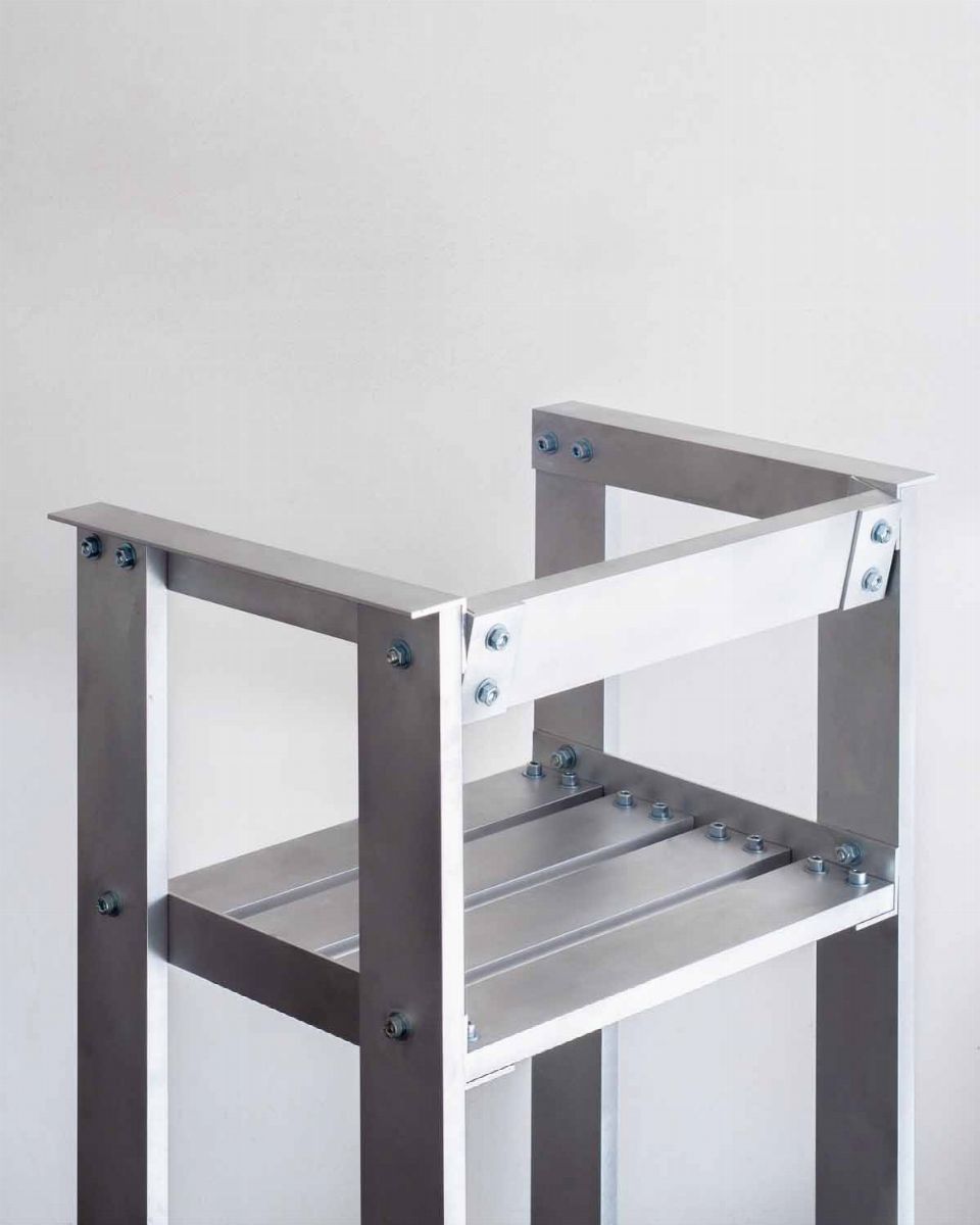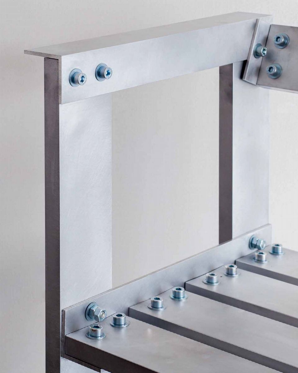 La Sedia ALU è stata realizzata durante la reclusione per Covid-19 nell'aprile 2020. Costretto nel mio atelier, senza accesso a nuove forniture, ho deciso di sfruttare questa situazione bizzarra come occasione per lavorare con materiali di scarto o di recupero da progetti precedenti che avevo in giro per lo studio. Così questa sedia è stata creata con gli avanzi di un set realizzato per Adidas nel 2018. Born in Paris suburbs, Julien Carretero studied industrial design consecutively in France and in England before attending the Contextual Design MA at the Design Academy Eindhoven. AFer his gradua9on in 2007 he founded Studio Julien Carretero, which moved to Brussels in 2012. Studio Julien Carretero is a multidisciplinary practice involved in the design of objects, furniture, lighting, processes, interiors, workshops and exhibitions. In an attempt to question contemporary production methods it oFen focusses on the crossover between craFsmanship and industry, through either the transformation of artisanal techniques into serial production processes or the use of heavy industrial facili9es as simple mediums. Julien’s work was awarded by the Villa Noailles Design Parade festival in Hyeres and is part of the collec9on of the Fonds National d’Art Contemporain (F) and the MUDAM Luxembourg. His projects have been internationally exhibited in renowned venues and events such as the Triennale di Milano, Design Miami/ Basel, the Tokyo 21_21 Design Sight Museum, the New York Museum of Art and Design and the Cologne Museum for Applied Arts. Julien has also been teaching, lecturing and giving workshops in Germany, Italy, Korea, the Netherlands, Belgium, France and his work has been featured in many major design books and publica9ons worldwide.