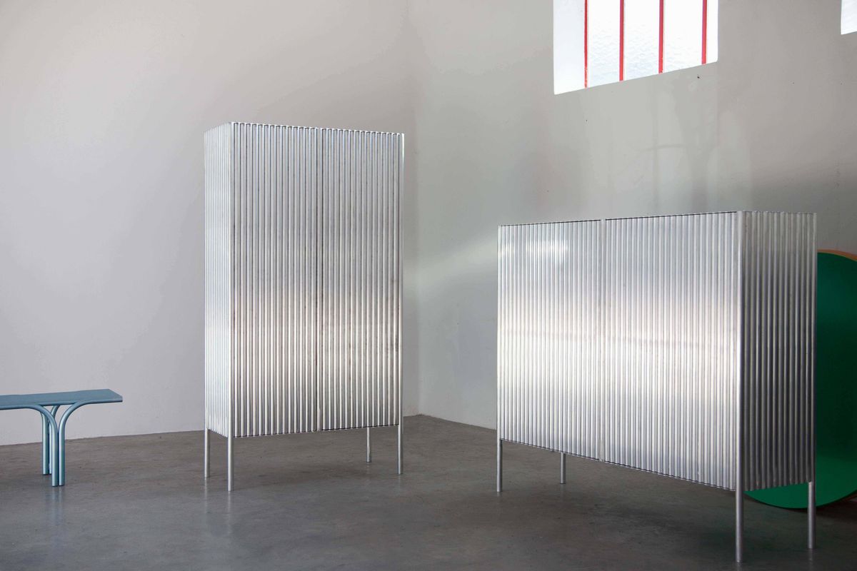 ASTA CHARITY PER L'OSPEDALE LUIGI SACCO DI MILANO, LOTTI VENDUTI SENZA COMMISSIONI Lotto offerto da Muller Van Severen con donazione del 50% soggetto ad IVA, proveniente da Evergem, Belgio ALLTUBES cabinet low fa parte dell'ultima serie di Muller Van Severen, ALLTUBES, una nuova serie di oggetti creati dal susseguirsi di tubi di alluminio. La serie comprende diversi armadi, una panca e una sedia e costituisce una famiglia con geni in comune ma caratteri molto diversi. Muller Van Severen was founded in the early Spring of 2011. With both Fien Muller and Hannes Van Severen being artists, it’s natural that the collection sits somewhere between design and art. The couple has been on an inspired quest for sculpturally interesting furniture objects, always including the space around it, and characterized by a careful research into their shared passion for art, architecture and materials. At the same time Muller Van Severen’s designs appear to be created almost intuitively and with total effortlessness. It looks as if the designers draw with crayons in space. After winning countless awards and collaborating with prestigious museums (such as Vitra Museum, Centre Pompidou and Musée d'Art Decorative Paris) and galleries (Galerie Kreo, Side Gallery, Valerie Traan Gallery) worldwide, Muller Van Severen is considered to be one of the most image-defining European design teams of today. Their creations are globally identified in both private homes and public spaces. All of Muller Van Severens own production pieces are handmade by small-scale fabricators and skilled artisans, with an honesty to the rawness and irregularity of the chosen material.
