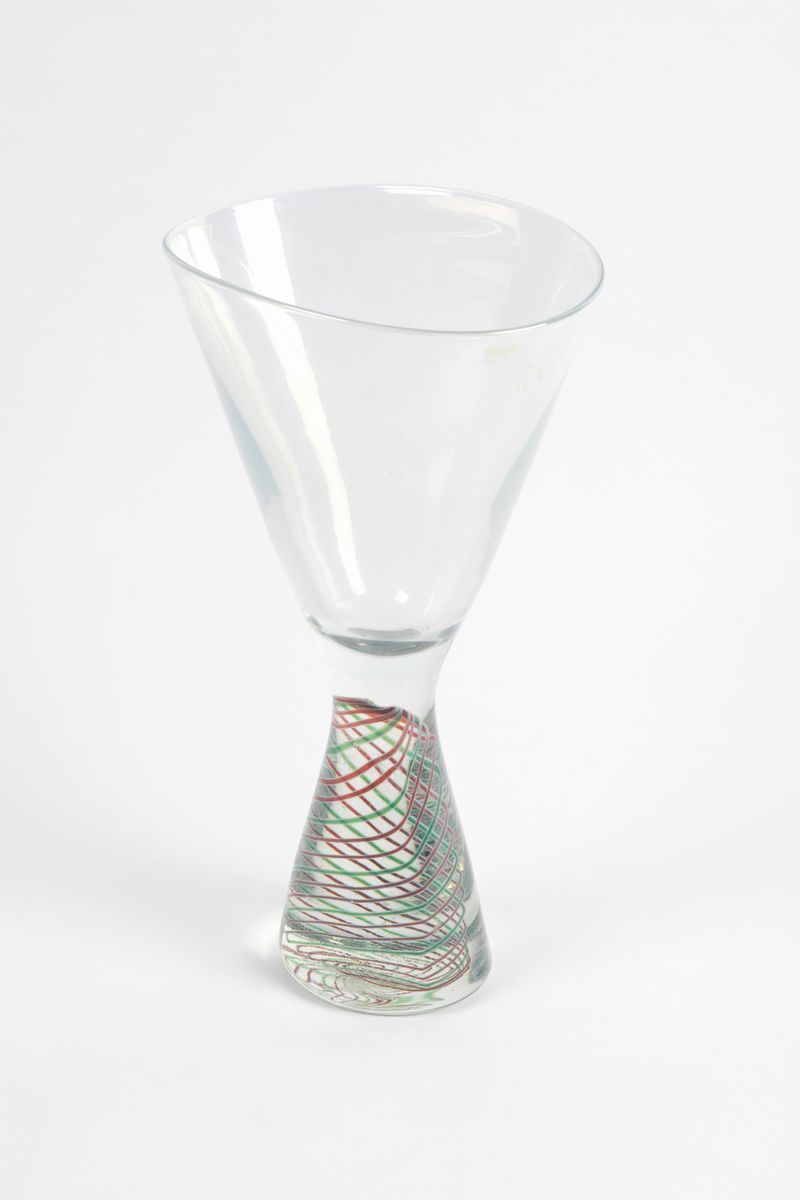 Vaso in vetro soffiato con piede in vetro pesante con decoro di spirale.
