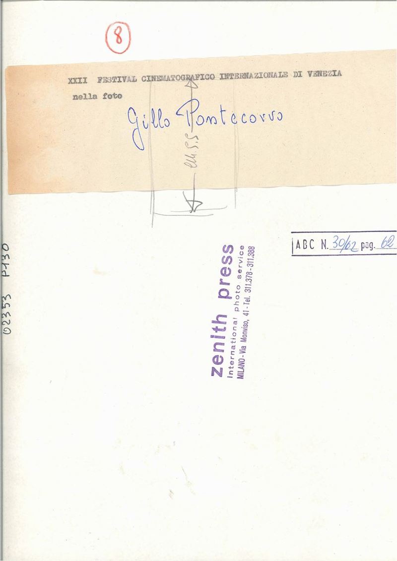 XXII Festival cinematografico Internazionale di Venezia, nella foto Gillo Pontecorvo