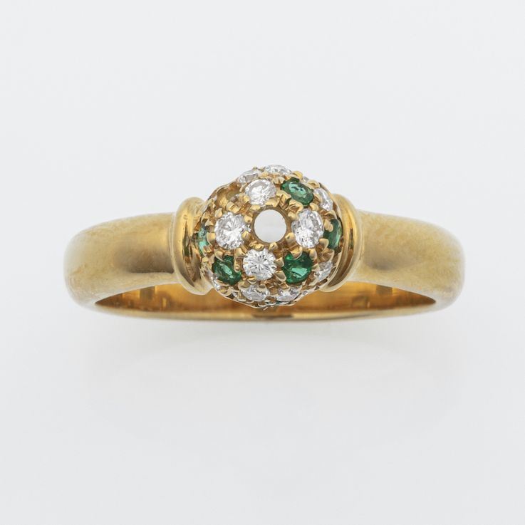 Anello con diamanti e smeraldi, firmato Lani: gr 4.9; misura italiana 13. Mancanza
