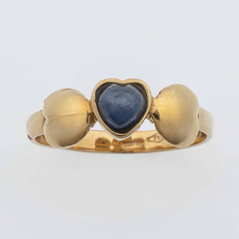Anello con zaffiro taglio cuore cabochon: gr 2.8, misura italiana 14