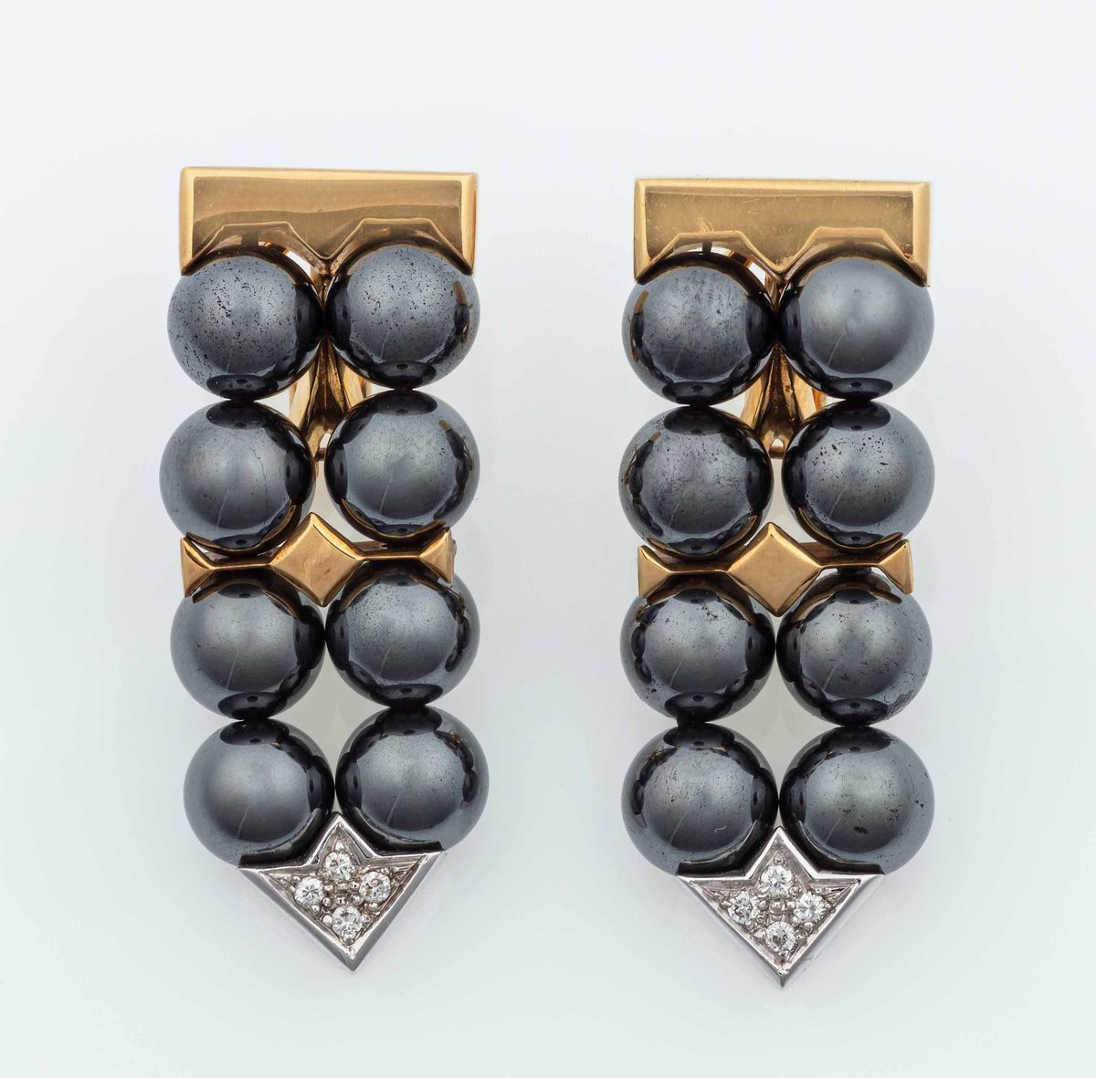 Lotto composto da un anello con diamanti firmato Lunati ed un paio di orecchini con ematite e diamanti
