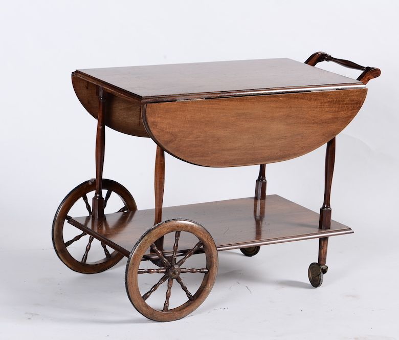 Lotto composto da tavolino, tre lumi e carrello in legno