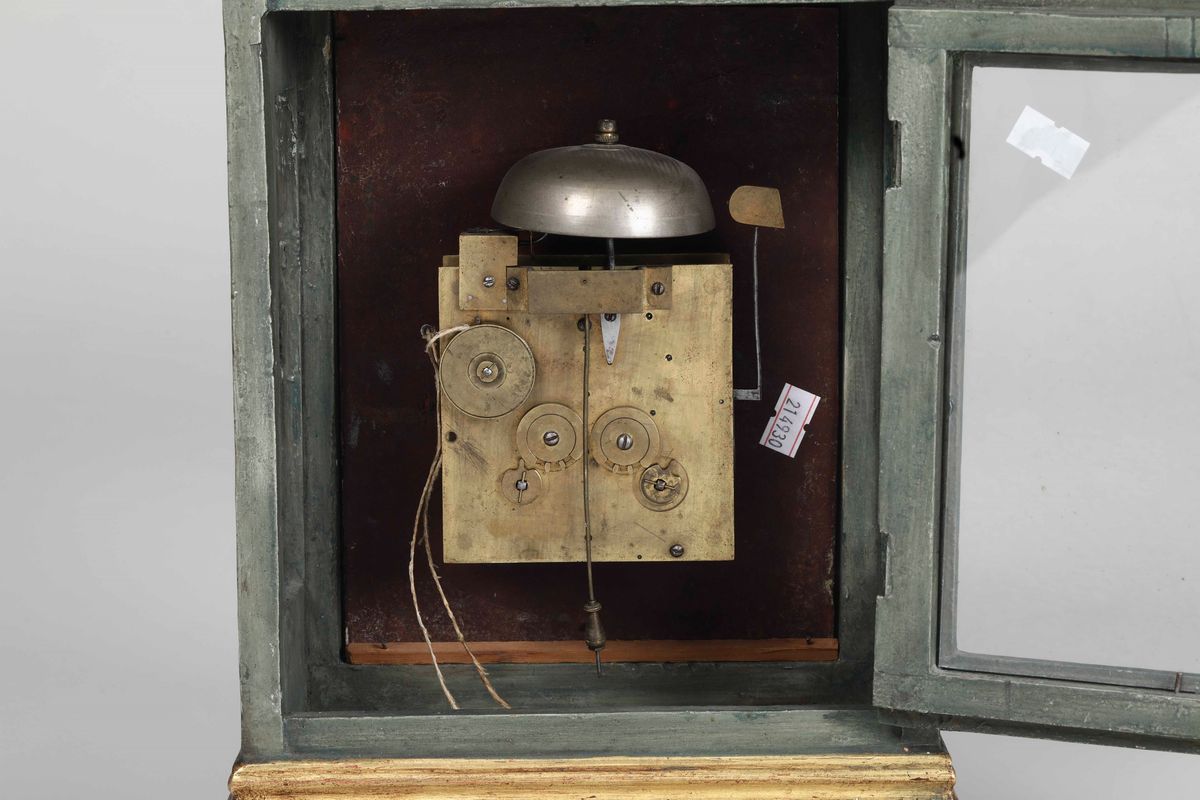 Pendola da tavolo in legno laccato e dorato, XIX secolo