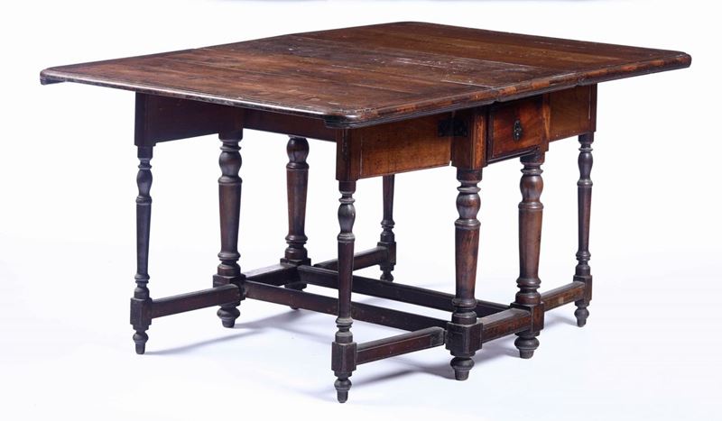 Tavolo a bandelle in noce. Probabilmente Francia, fine XVIII, inizi XIX secolo