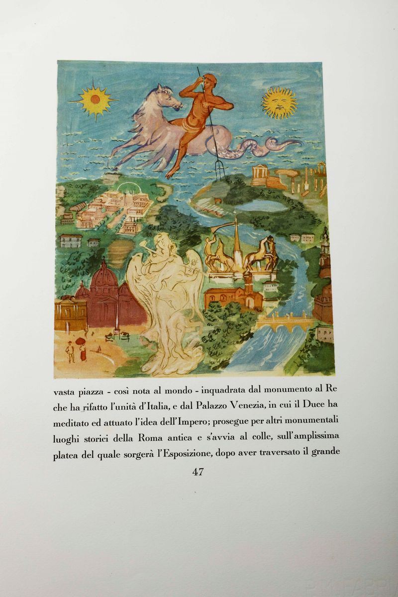 Edizione di lusso di soli 1200 esemplari, pubblicata da Cini in veste di Commissario Generale per l'Esposizione Universale che si sarebbe dovuta tenere nel 1942. Le tavole a colori, tra cui una di Sironi, raffigurano piante e prospetti di palazzi nel quartiere che si sarebbe poi chiamato EUR.
