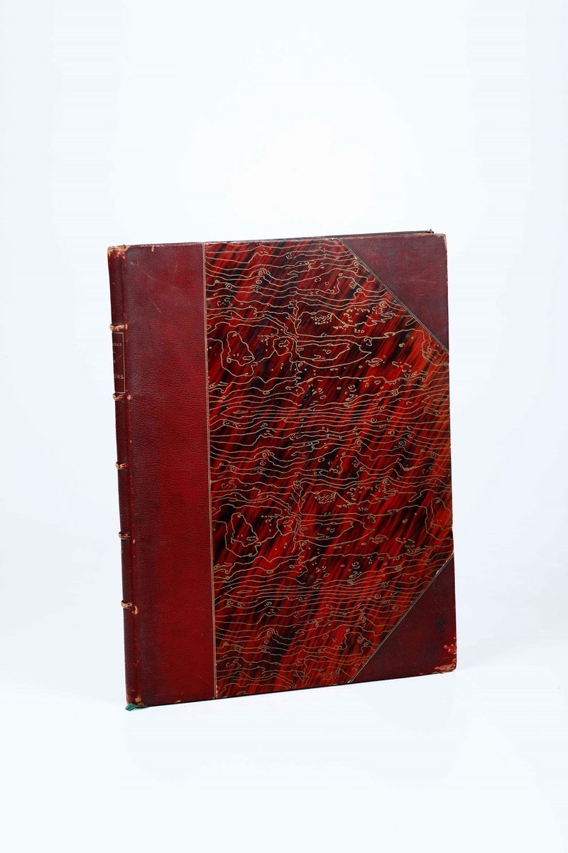 In-folio. Legatura coeva in mezzo marocchino rosso. Uno dei 25 esemplari stampati su carta del Giappone. Belle tavole a colori a contorno del testo. Fioriture piuttosto diffuse.