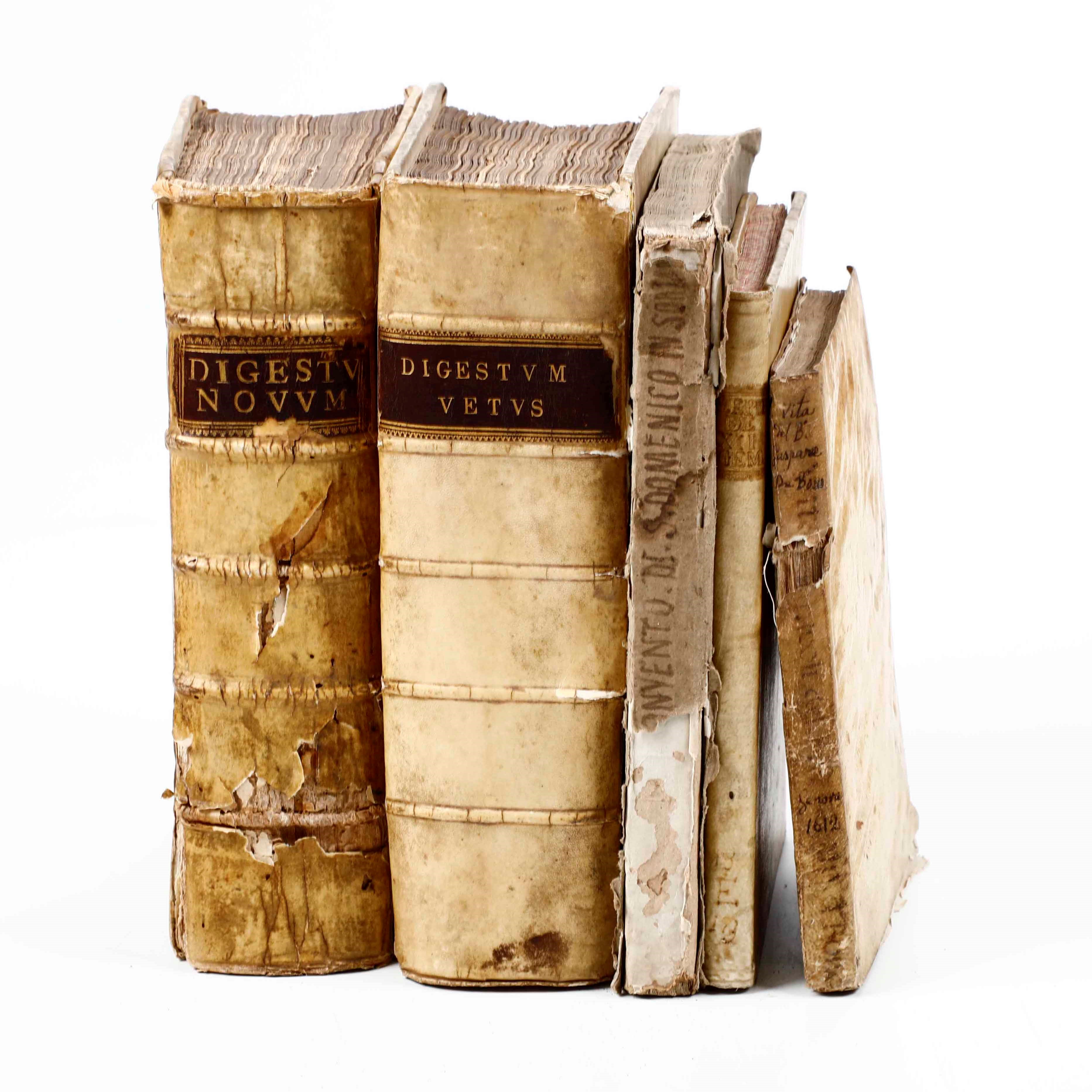 In-4°. Legatura staccata in pergamena floscia coeva. SI AGGIUNGONO NEL LOTTO: Foggini, Francesco-s. Epiphani...Roma,TypisZempellianis,1743. / Marini, Fra Gio.Batta-Cronica del convento di San Domenico di Soriano...In Soriano,1665 / Digestum vetus...Lugduni, 1558. / Digestum vetus...Lugduni,1558(Mancanza alle prime carte e danno da umidità).