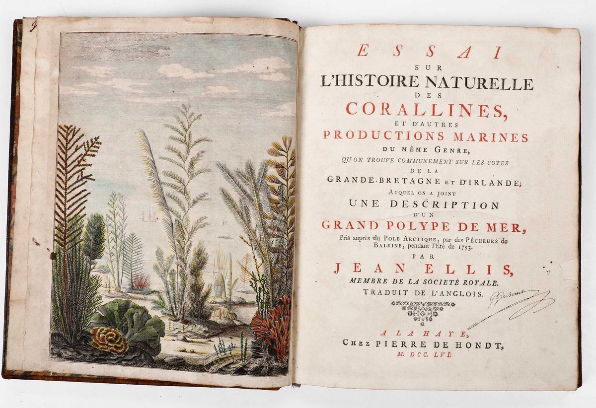 Jean Ellis Essai sur l'histoire naturelle des corallines...Alahare, chez Pierre de Hondt, 1756