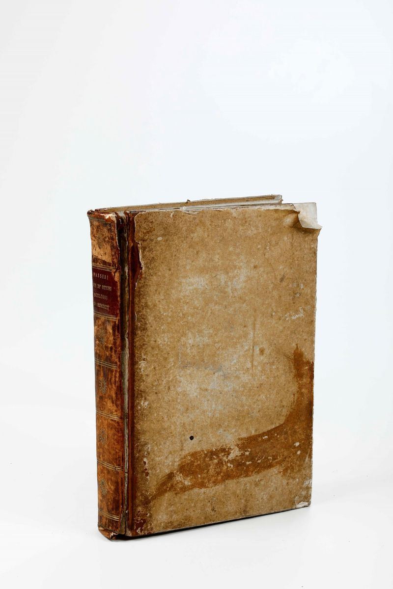 In-4°. Legatura in mezza pelle (abrasioni e rotture al dorso, rottura della cerniera anteriore). Ex libris moderno al contropiatto anteriore. Un bifoglio staccato infine. Bruniture e macchie ad alcune carte.