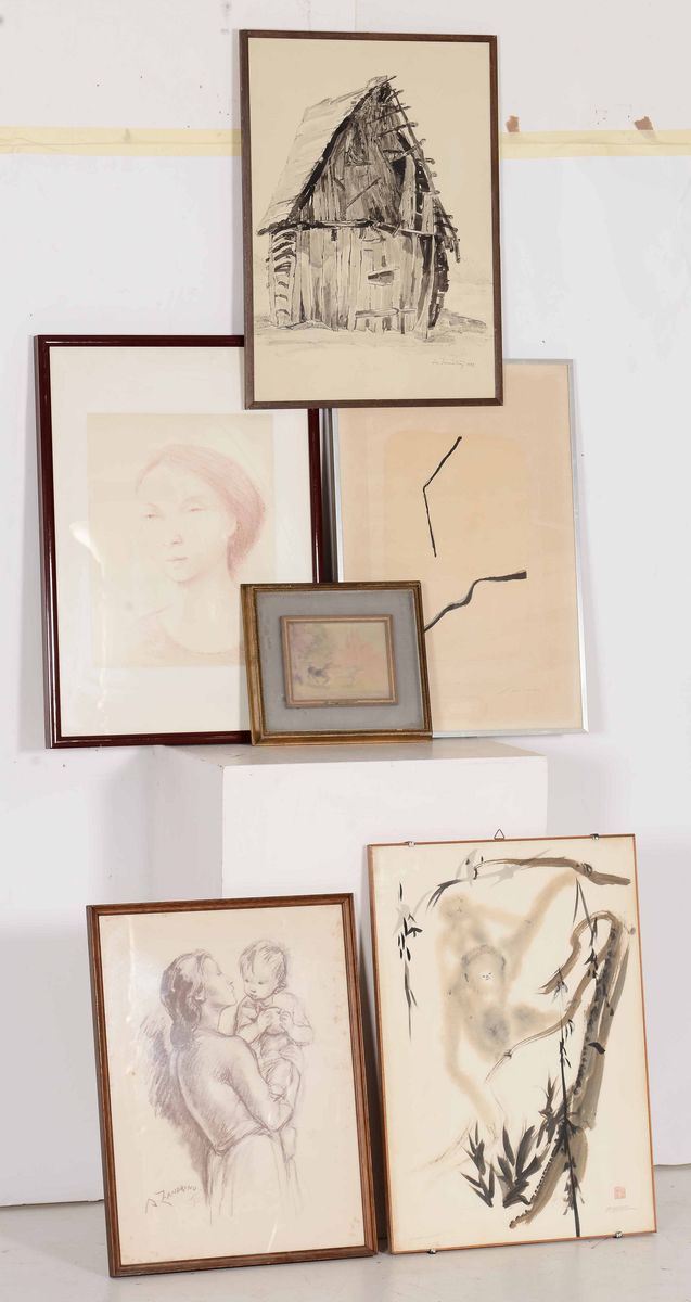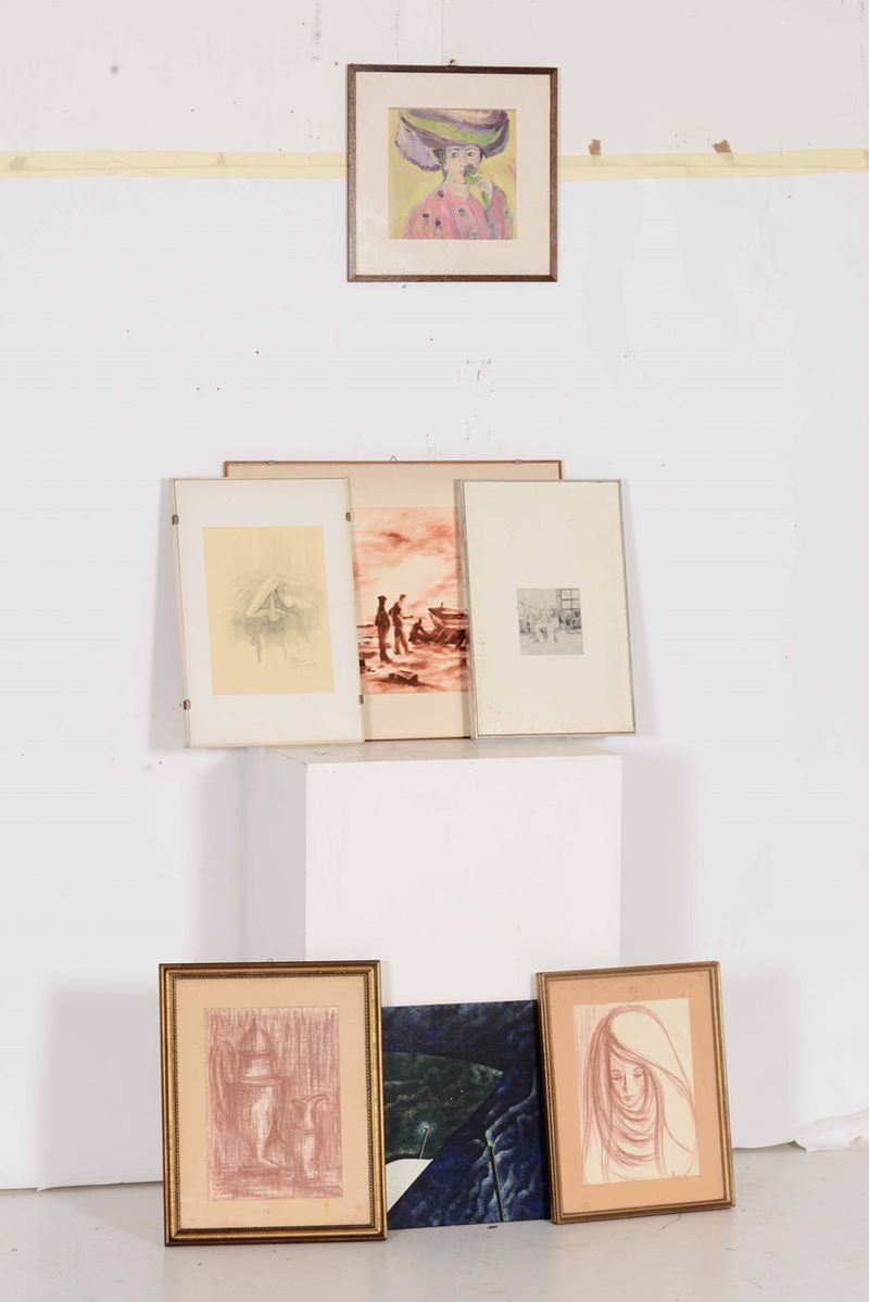 Lotto composto da disegni in cornice alcuni firmati: Martini, Zandrino, Conte e altri