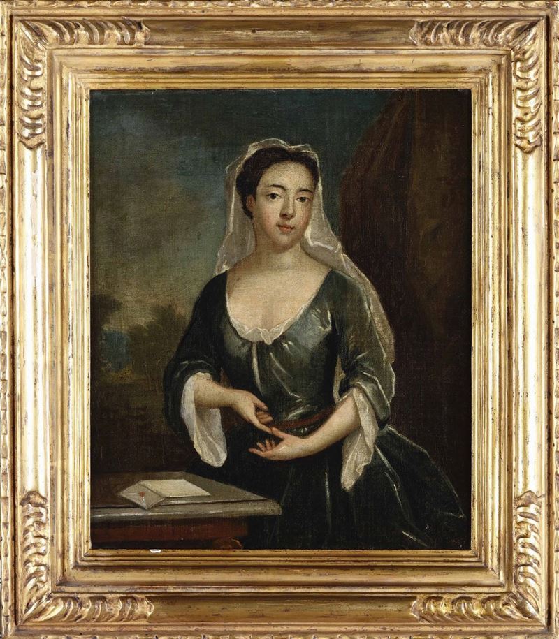 Scuola inglese del XVIII secolo Ritratto di dama con lettera