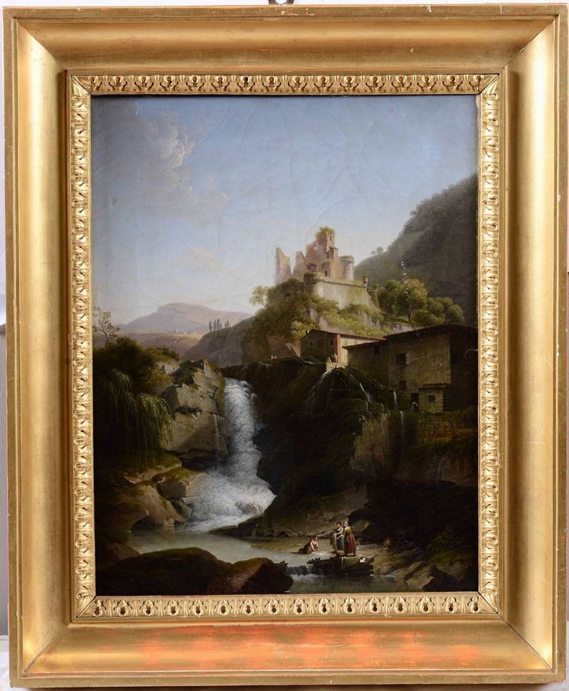 Scuola piemontese del XIX secolo Paesaggio con pastori e armenti Paesaggio fluviale con fortezza turrita e lavandaie