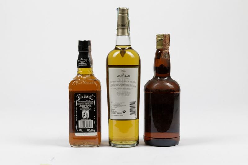 Macallan, Single Malt Highland Scotch Whisky Fine Oak 8 years Old Samaroli, Pure Malt Scotch Whisky Mortlach 23 Years Old Jack Daniel's, Tennesse Whisky