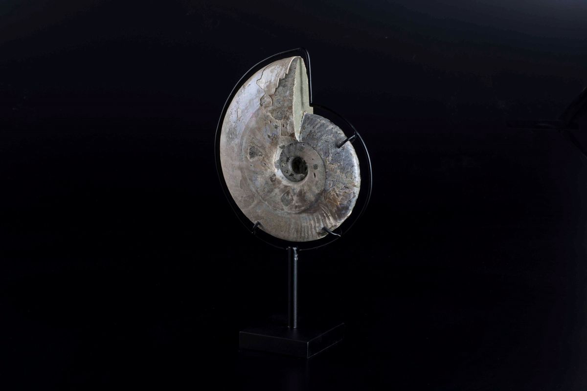 splendido esemplare di Cleoniceras, in elegante base in metallo cm 22x18x4,5