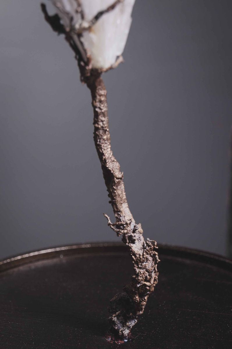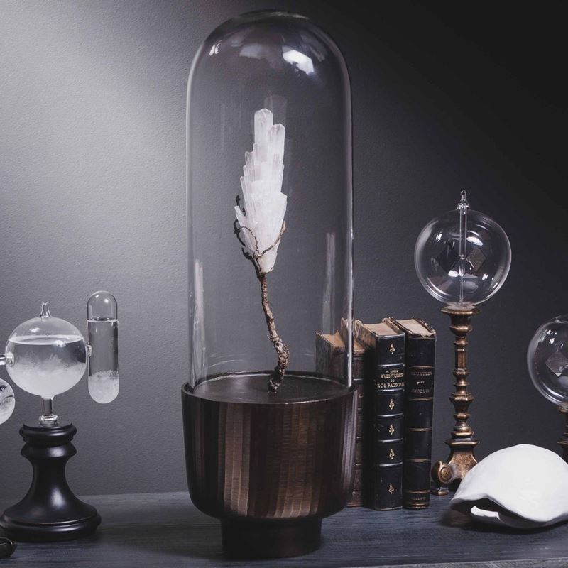 su ramo scolpito in bronzo, in teca di ottone e campana di vetro, Maharashtra, India Cm 50x14x14