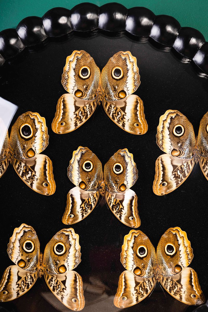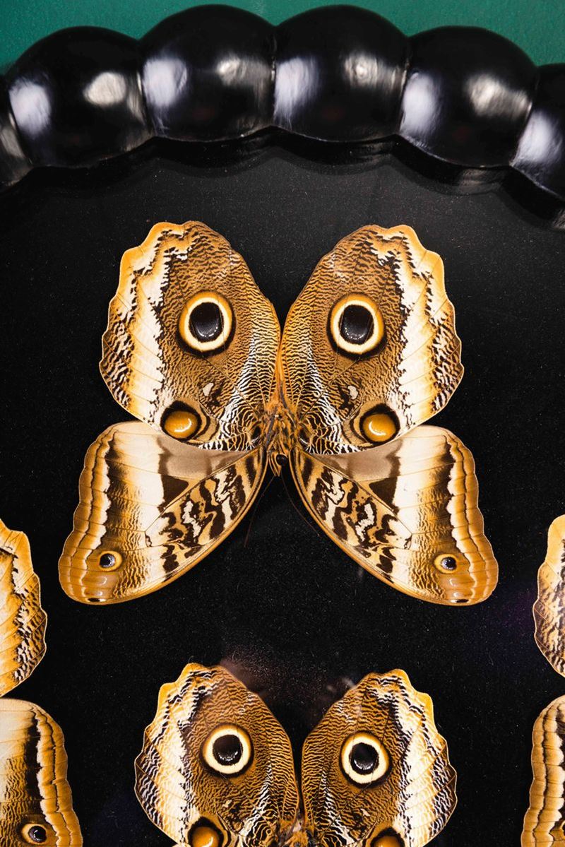 Caligo atreus, in elegante cornice in legno e vetro convesso, Cm 52x62x8