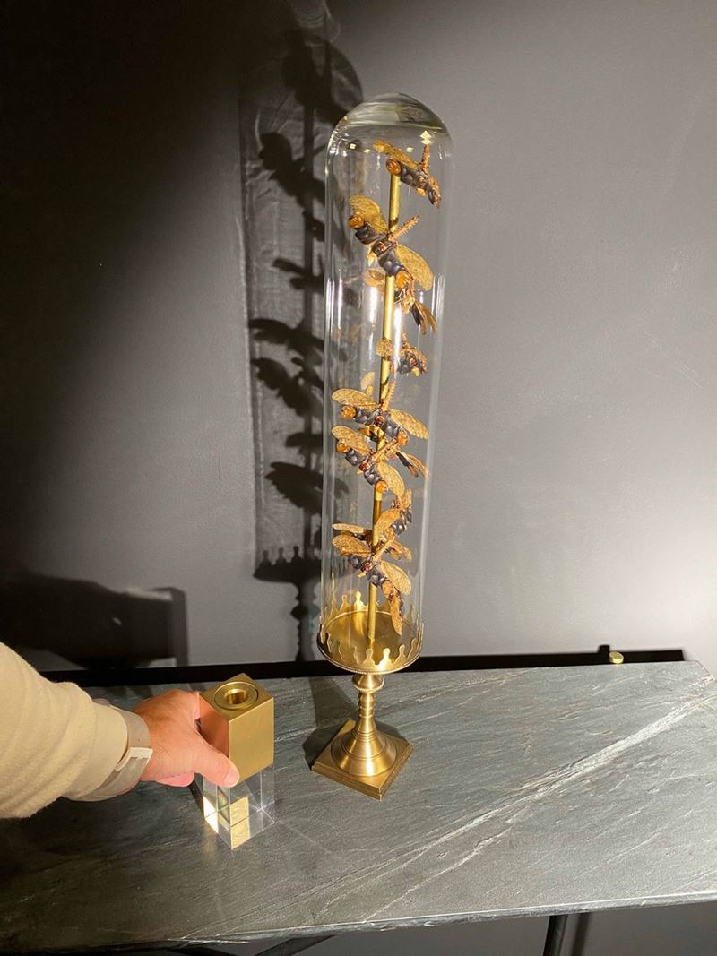 Cathedra serrata, in campana vetro e base ottone Cm 66x11x11