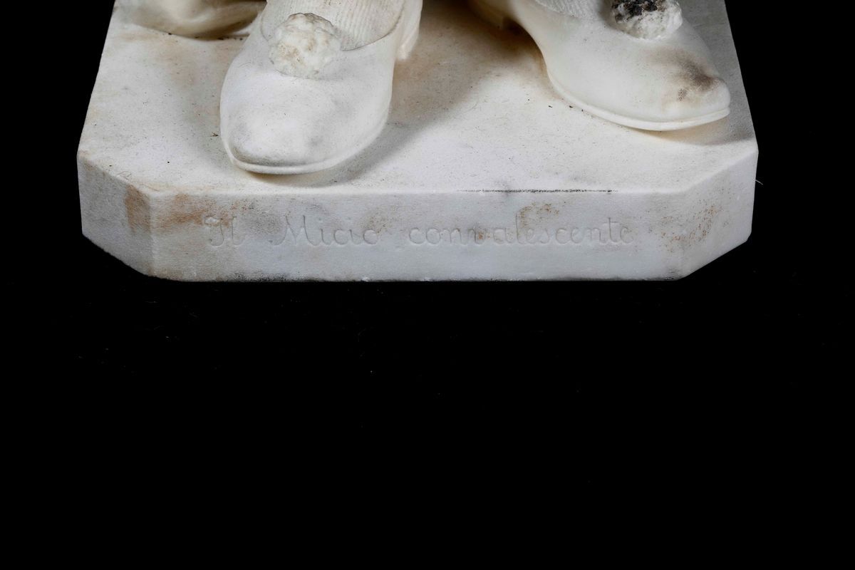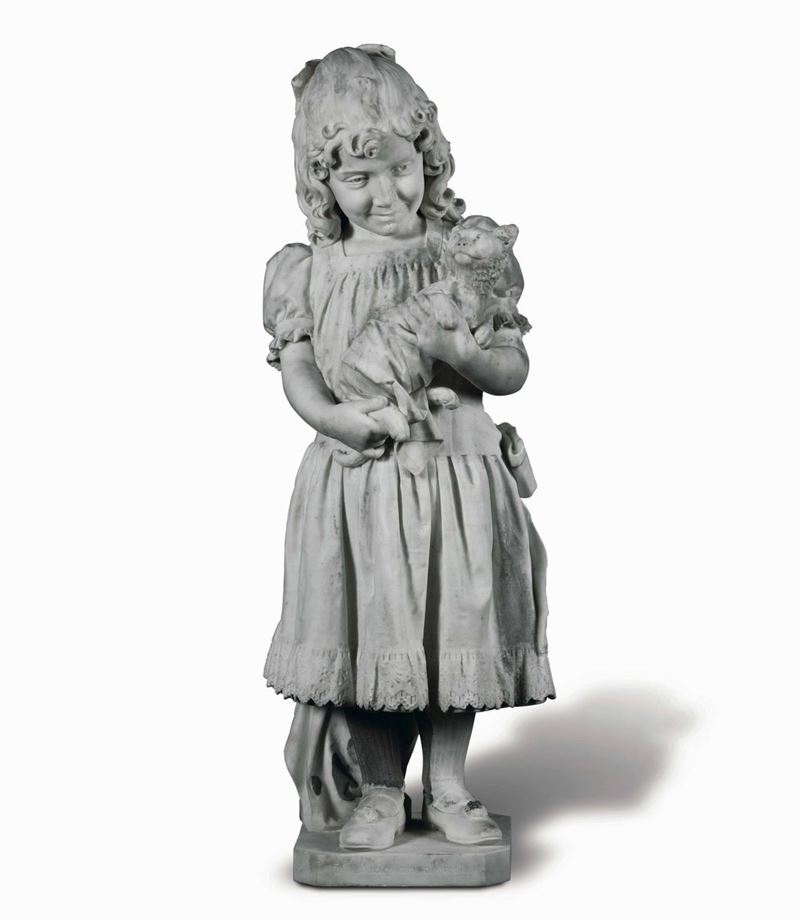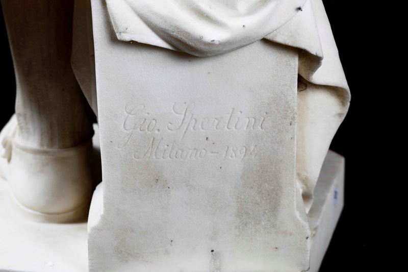 Scultura in marmo bianco, altezza cm 94, firmato Gio Spertini, Milano 1894