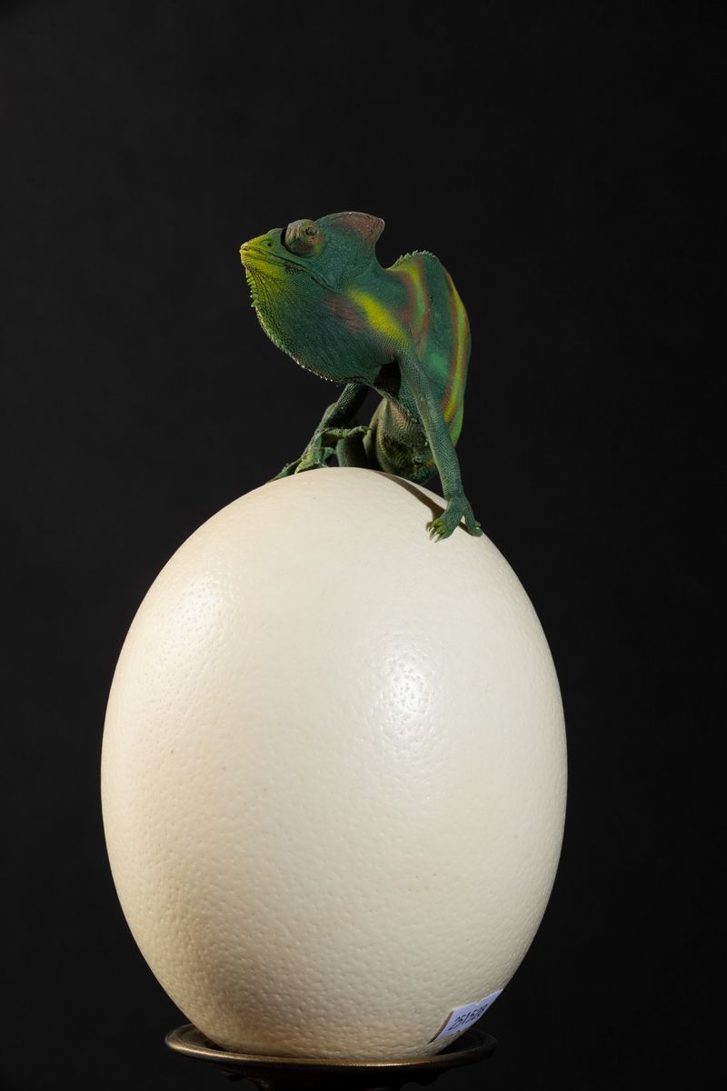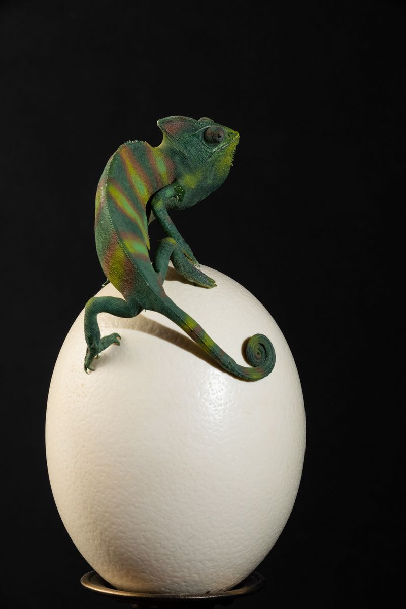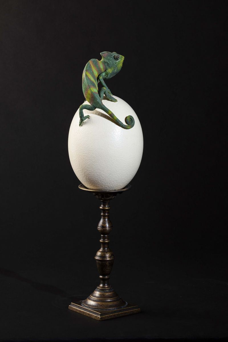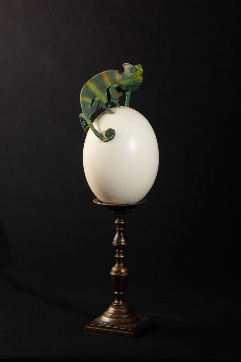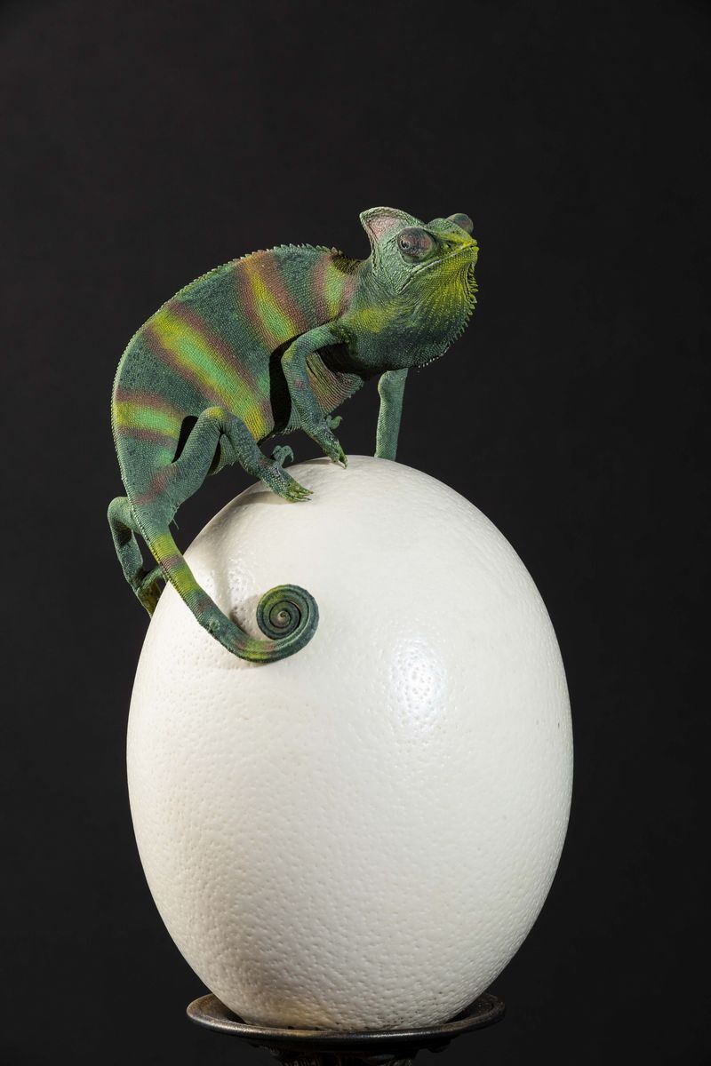 Il camaleonte con elmo può assumere differenti colorazioni.Il maschio è principalmente di colore verde. Corredato di certificato CITES.
