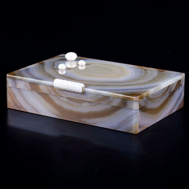 Cofanetto in agata con perle e resina in madreperla