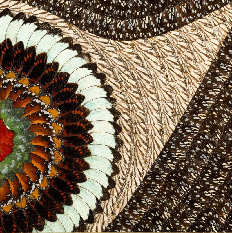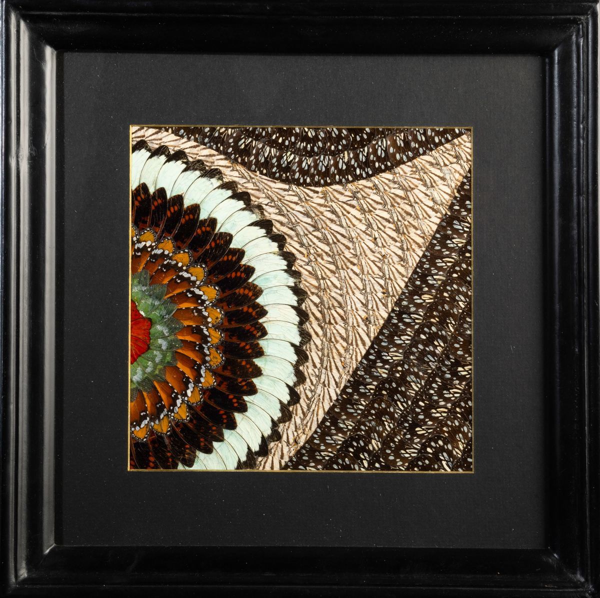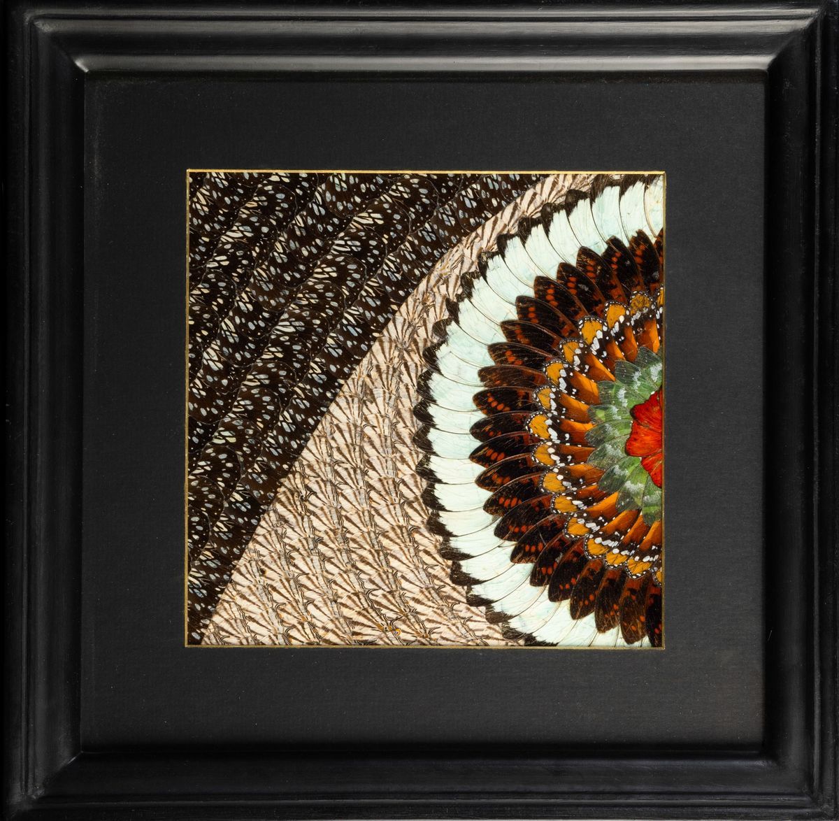 Coppia di dipinti ad ali di farfalla dell'Africa tropicale. Cornice in massello di mango.