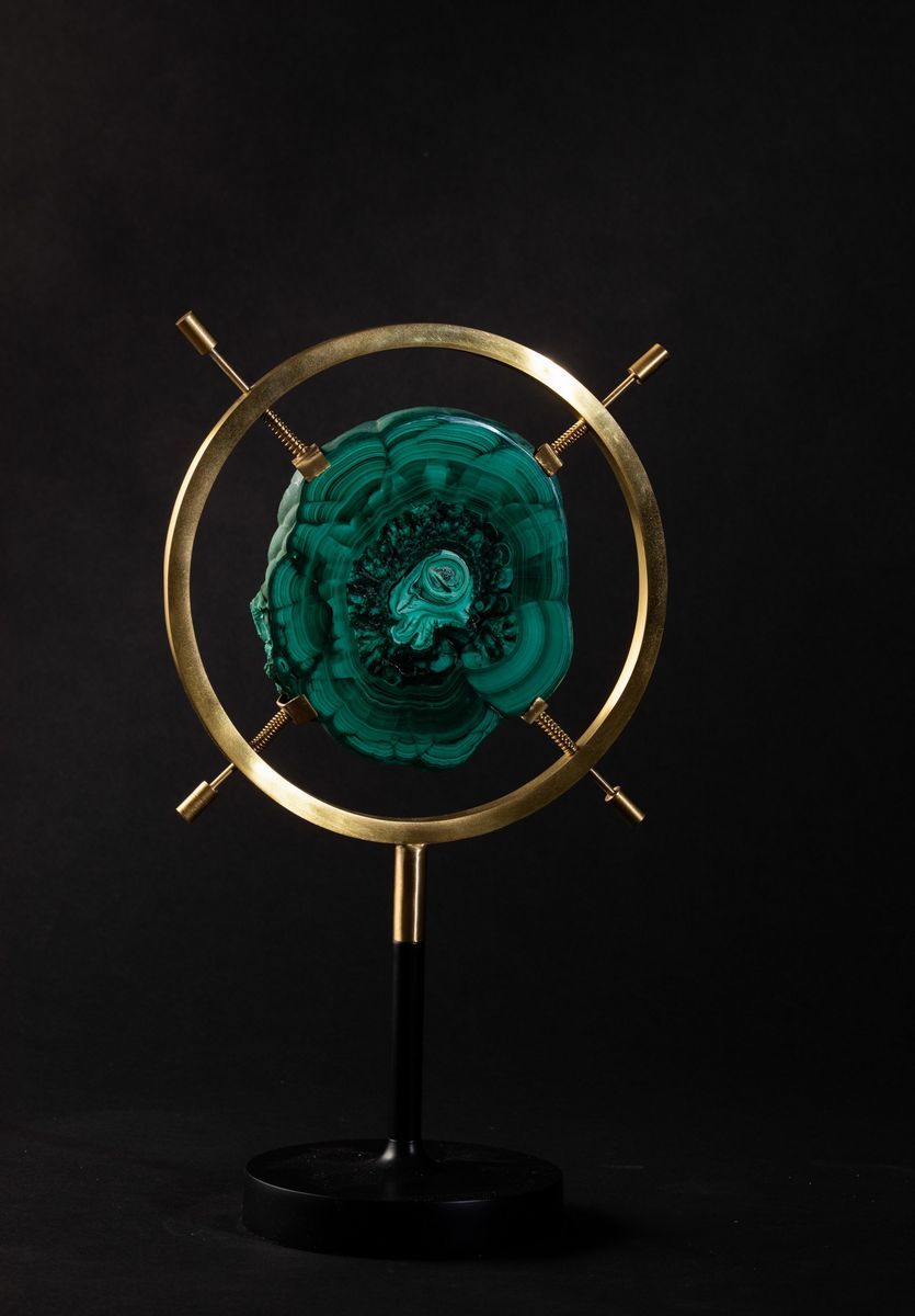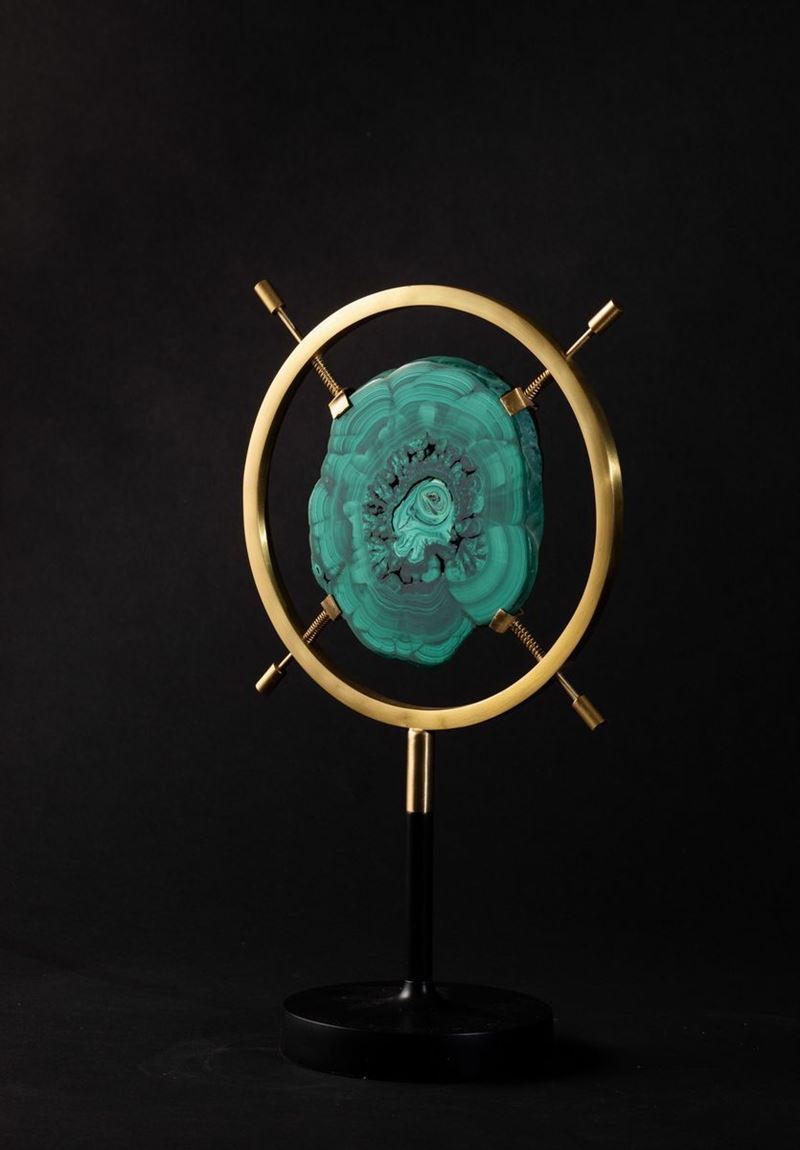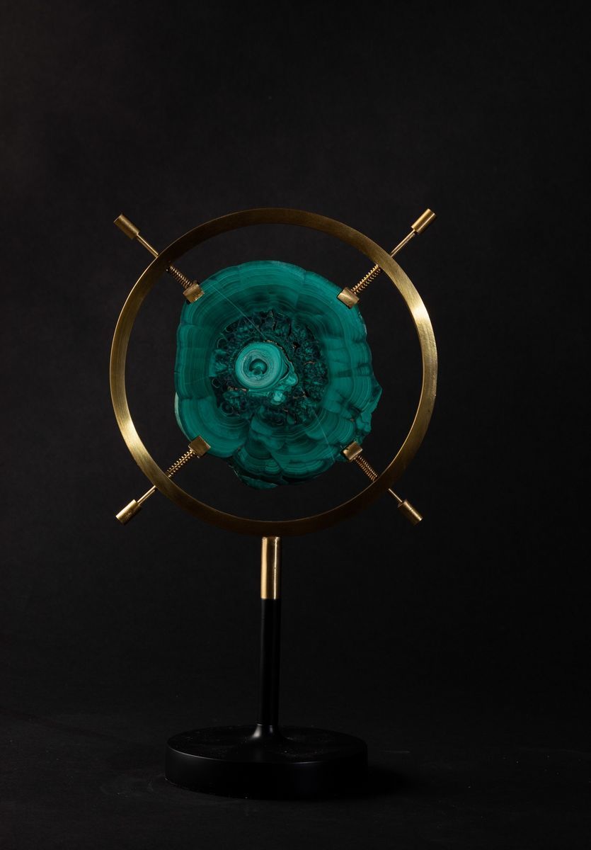 Fetta di Malachite in supporto circolare verticale