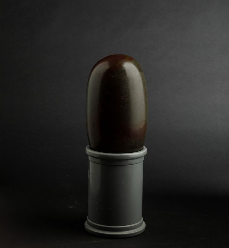 Lo Shiva Lingam, rappresentazione di Shiva, rappresenta la forma dell'Assoluto trascendente senza principio né fine. In agata, basalto e diaspro in quarzo su base in plastica.