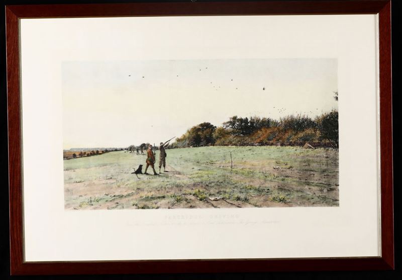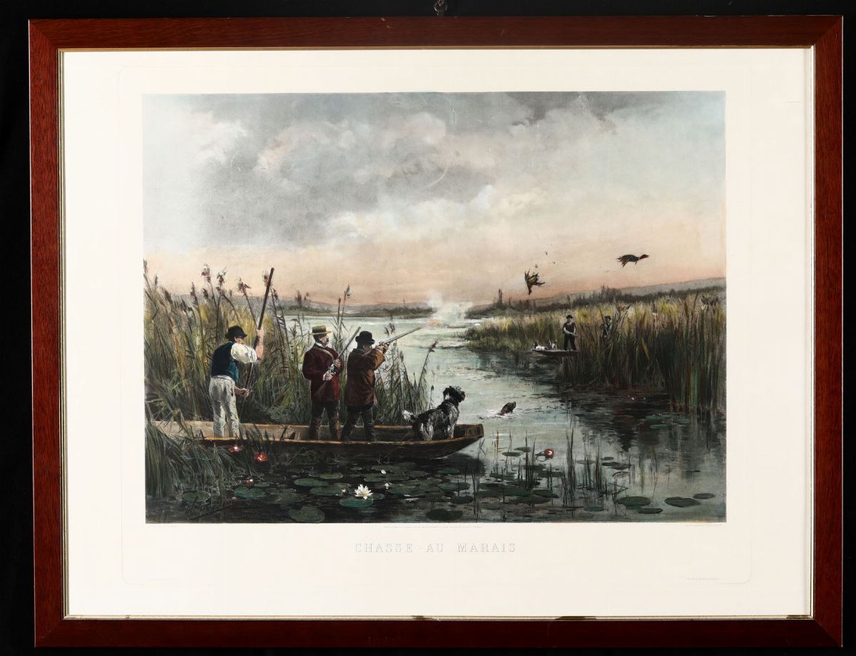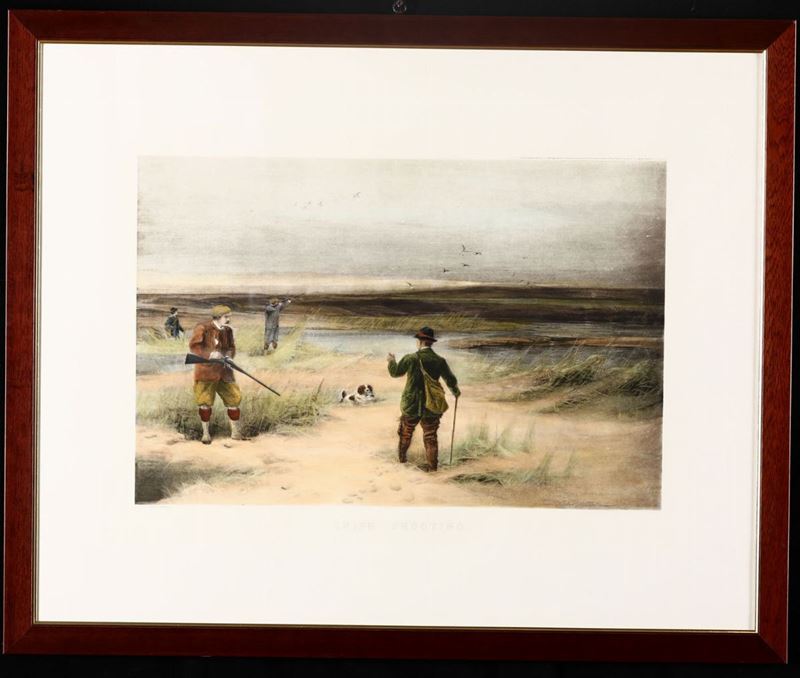 4 stampe di formati diversi raffiguranti scene di caccia
