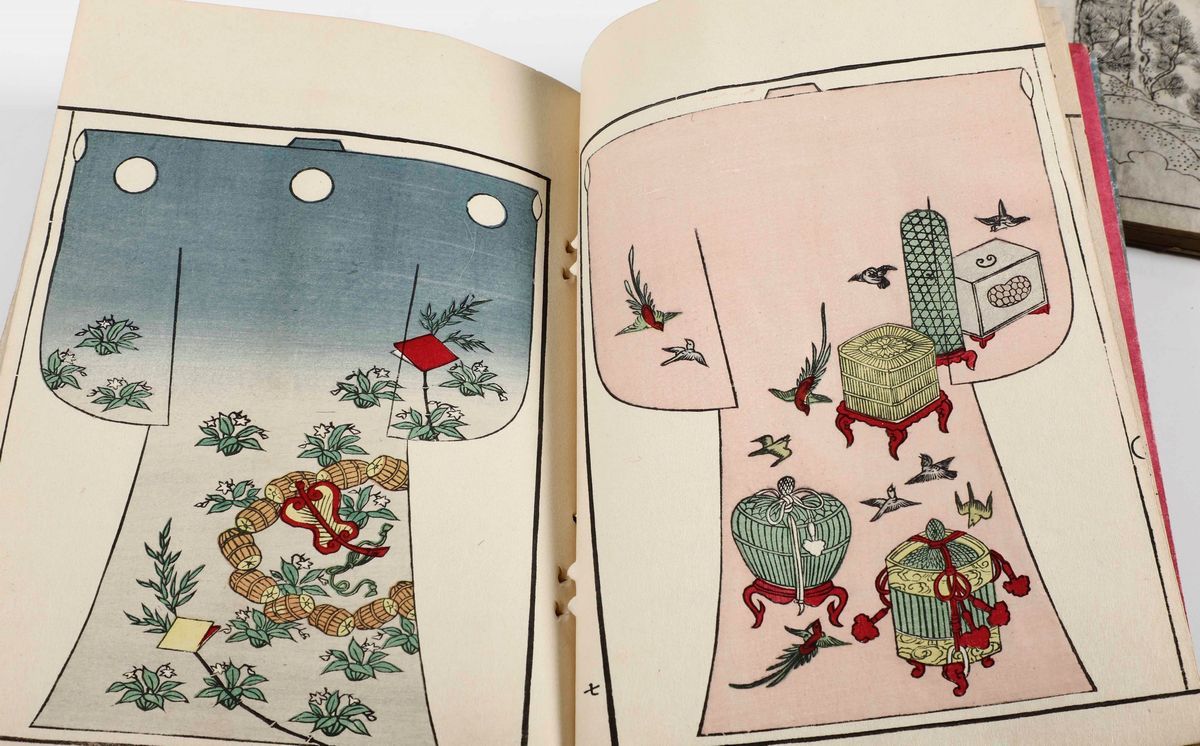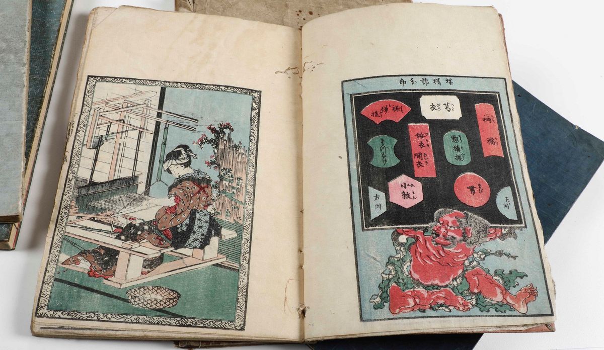 Raccolta di libri figurati giapponesi del periodo Meiji, riguardanti diversi aspetti della cultura nipponica.