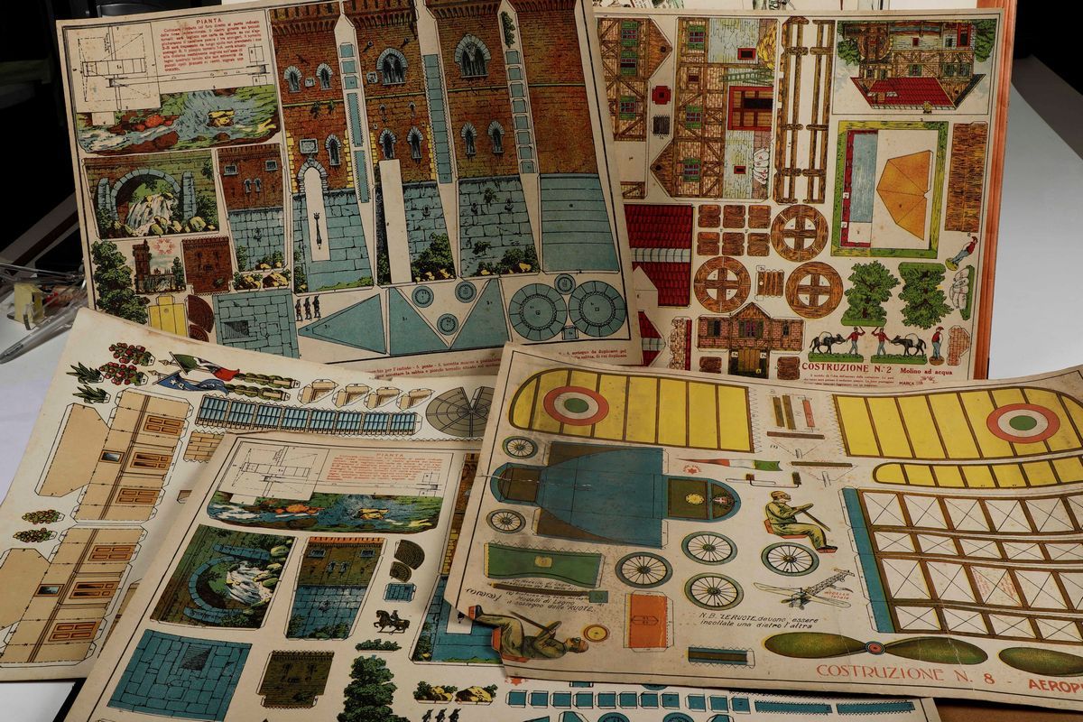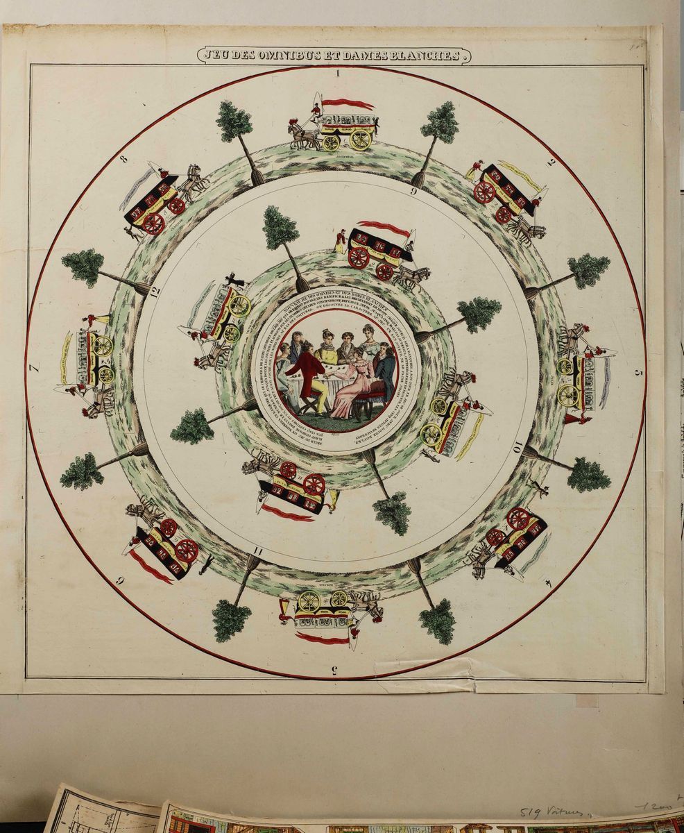 Bel lotto di fogli di giochi da tavolo dell'Ottocento e dei primi anni del Novecento.