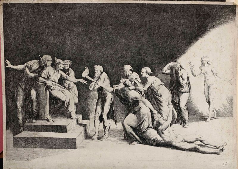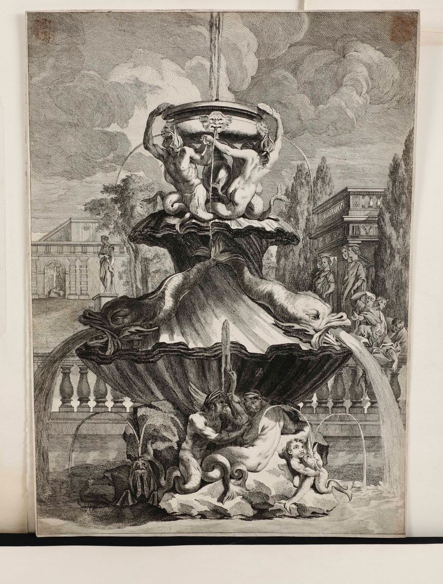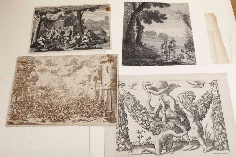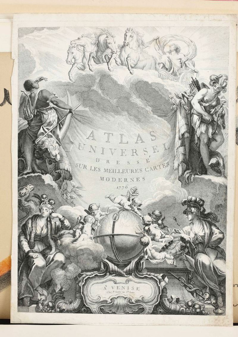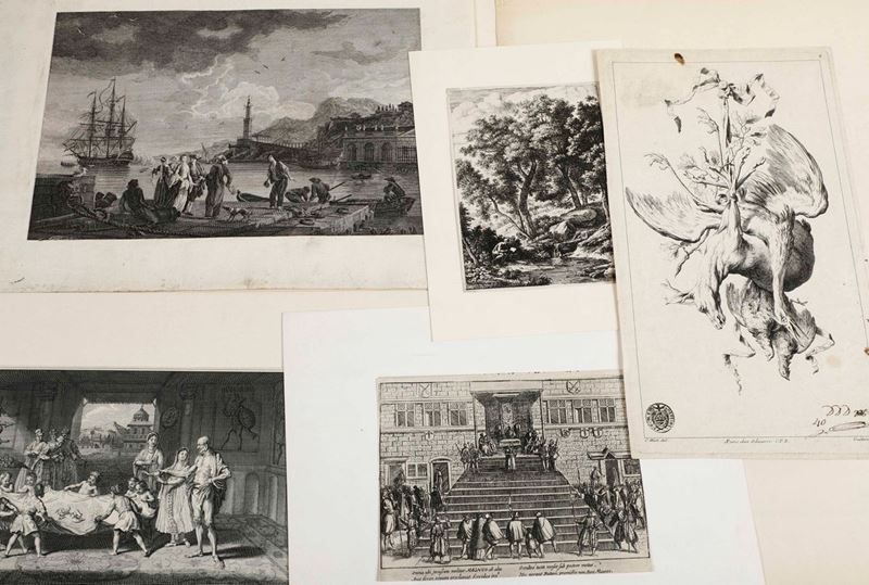 Frontespizio di atlante del secolo XVIII e varie incisioni di soggetto galante e decorativo.