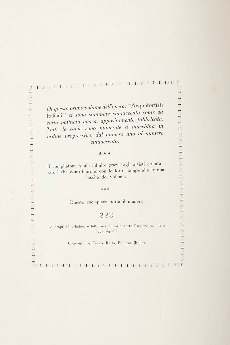 Ratta, Cesare Acquafortisti italiani (Solo volume primo), Bologna,(1920)