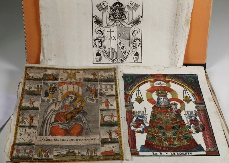 Bella raccolta di stampe antiche dal XVII al XIX secolo, di soggetto religioso, alcune delle quali di soggetto popolare e devozionale.