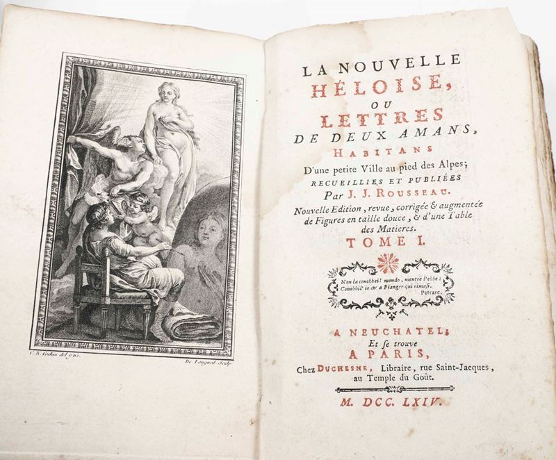 Rousseau, Jean Jacques La nouvelle Heloise...A Neuchatel (A Paris),1764. Due tomi