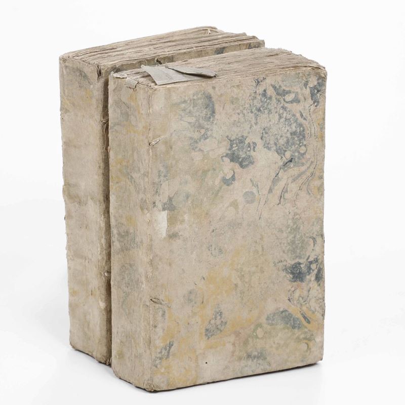 Legatura in cartonato coevo. Antiporta incisa al primo tomo.