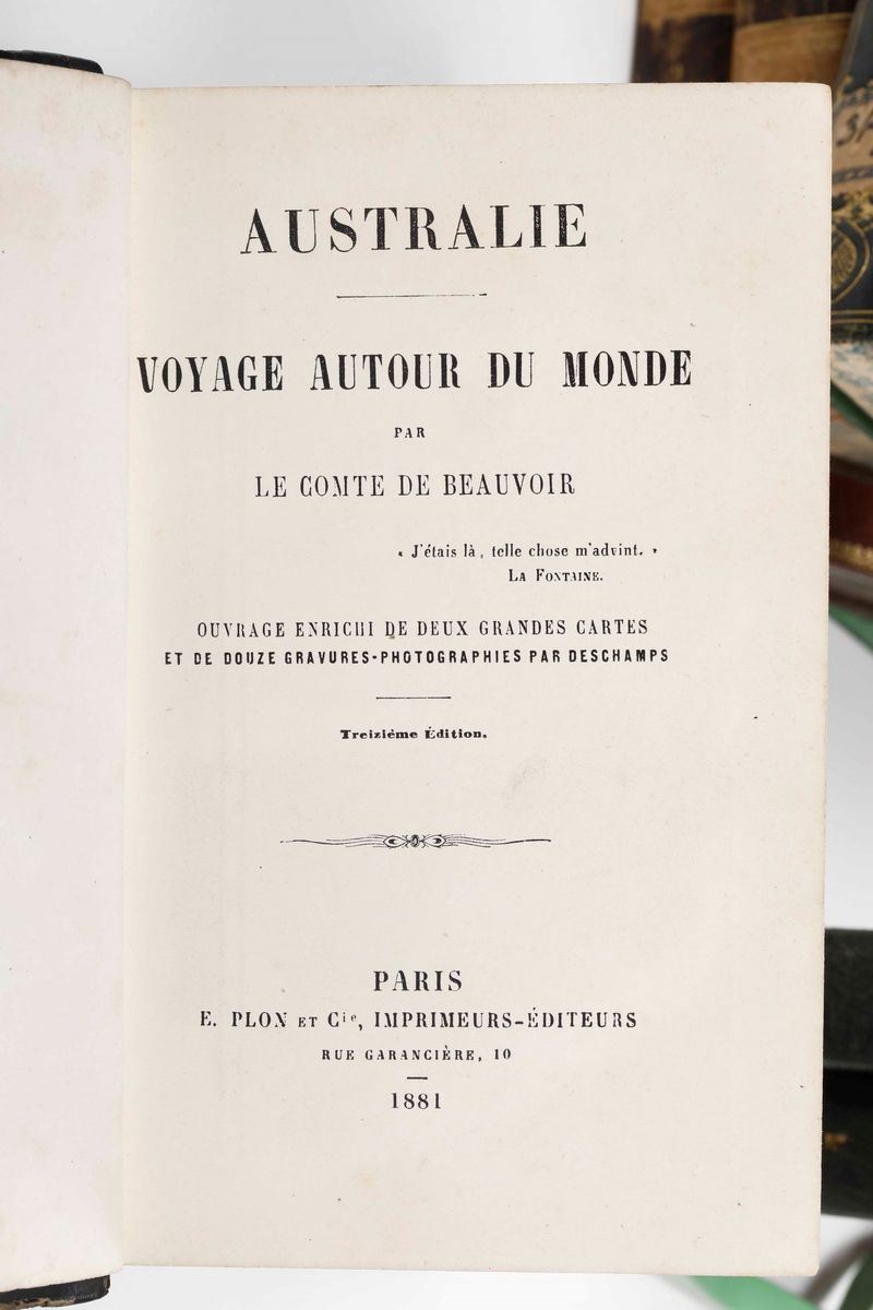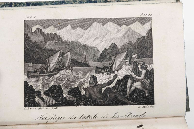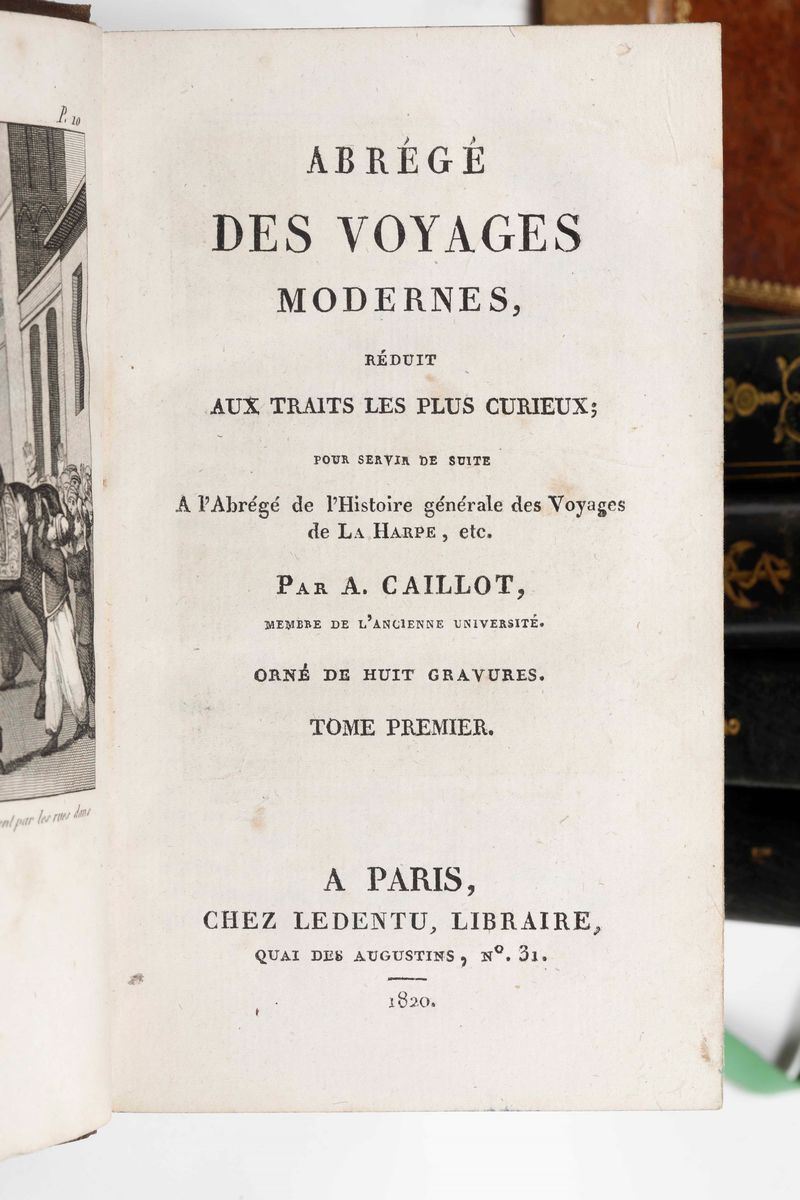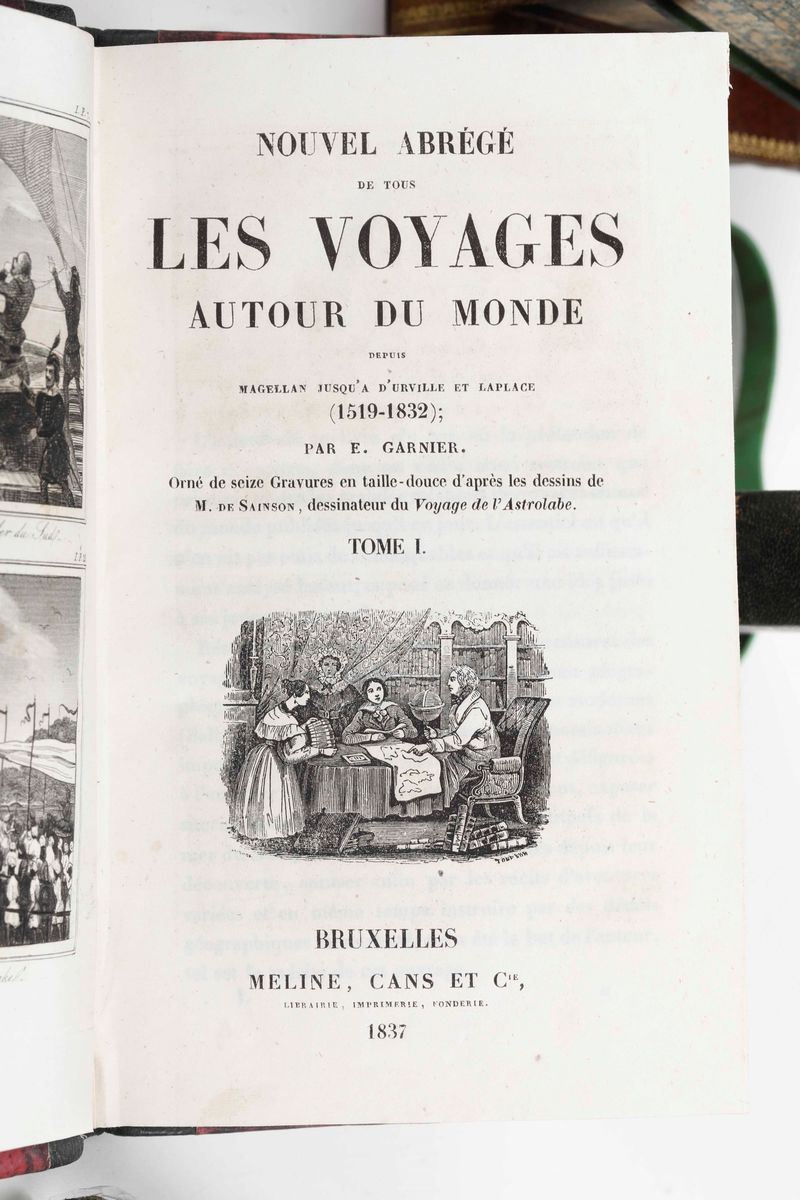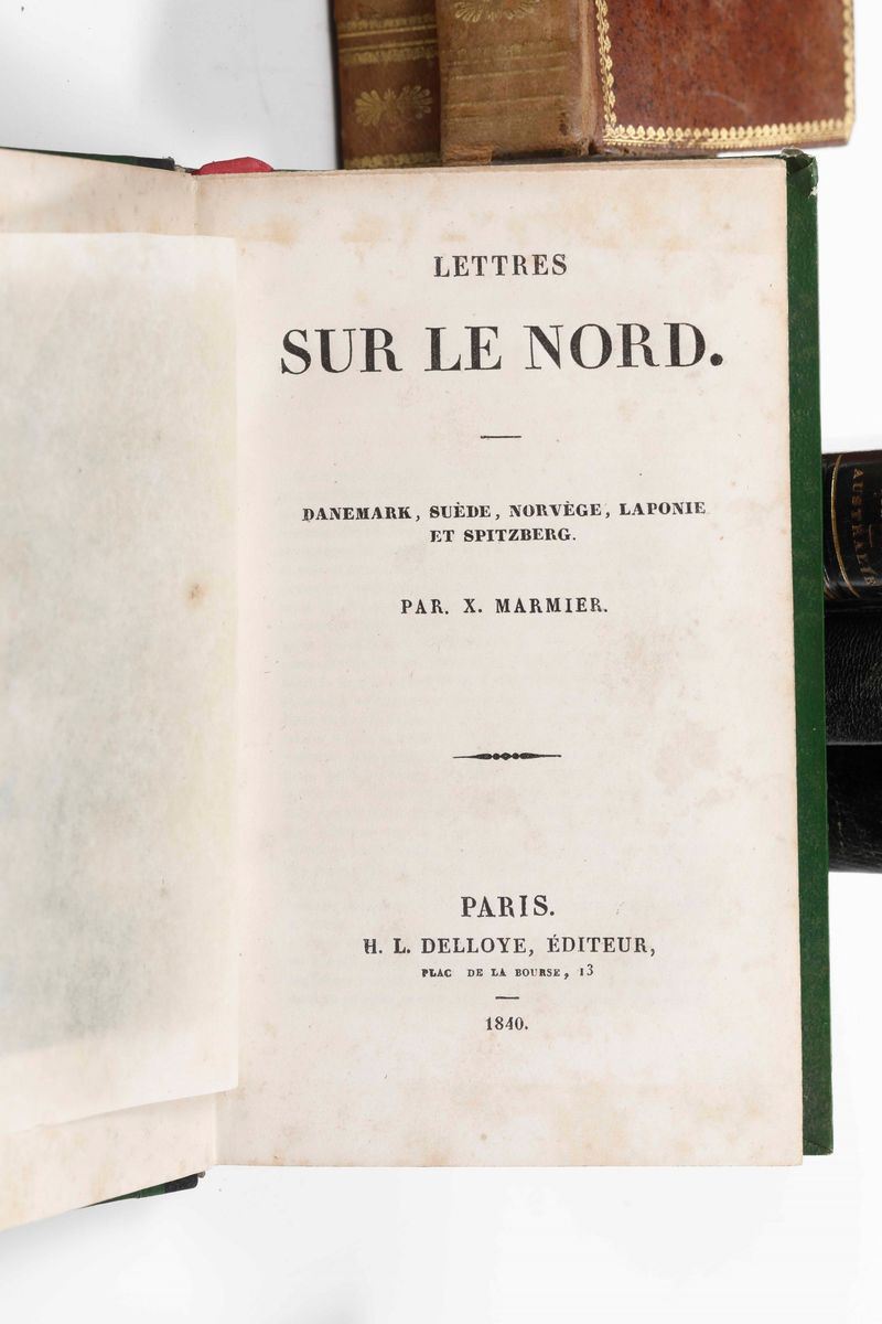 Collezione dei Viaggi Sonzogno, 93 tomi, pubblicati a Milano nella prima metà del secolo XIX. Purtroppo scompleti di tutte le tavole incise. Nel lotto si aggiunge: Eyres 21 volumi e altri 14 volumi che riguardano tematiche affini.