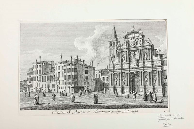 Veduta dal ponte di Rialto verso Ca' Foscari. Stato ultimo. Tiratura ottocentesca. mm 252x424 (immagine) 270x429 (lastra). Filigrana non identificata.